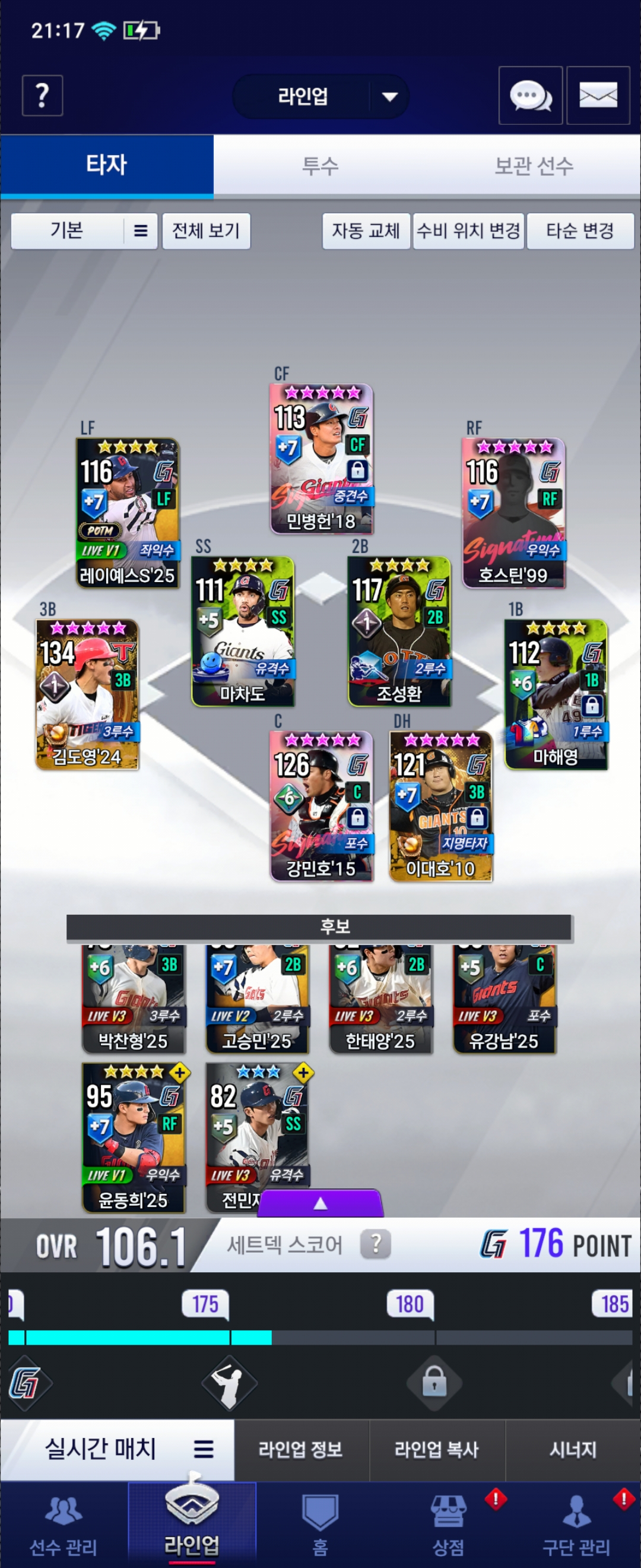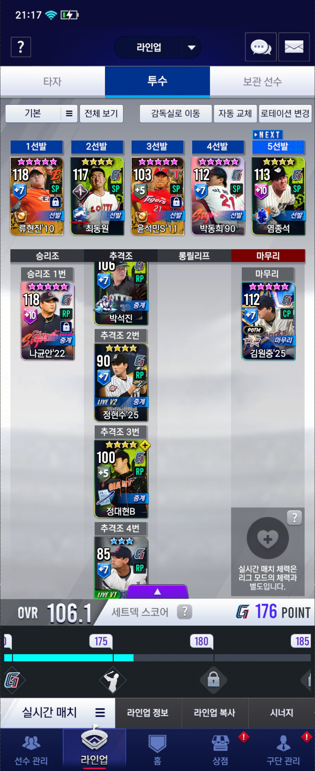 이번에 윤석민 얻어서 키울려고하는데 라인업에서 수정 할만한것좀 알려주세요..ㅠ