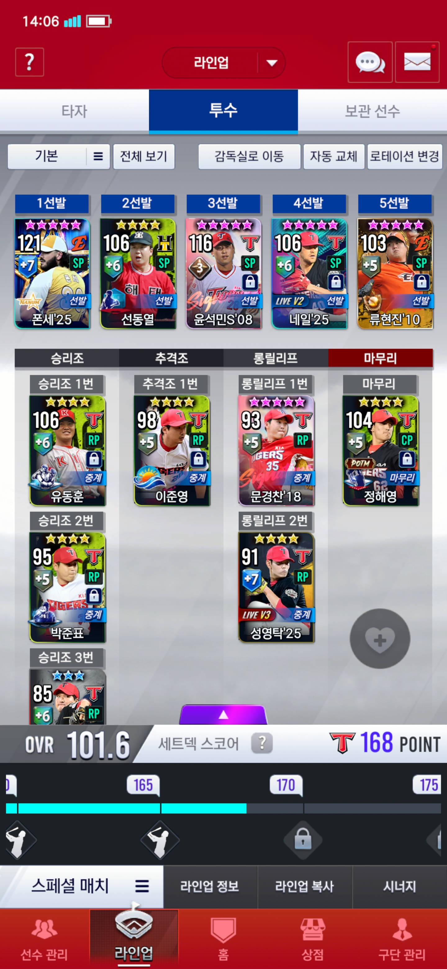 - 더 좋은 선발진 구성 있으시면 조언 부탁드립니다.