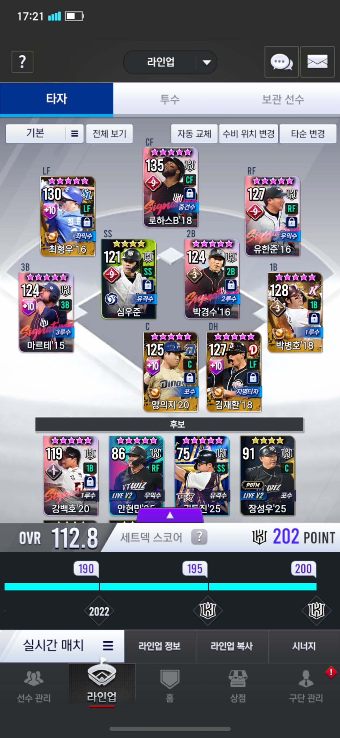 1.실대를 주로 즐기는데 박경수를 일반임팩으로 각성해서 16경수를 대표타자로 교체하는거는 어떨까요?(시선팩은 마르테 각성에 사용할 예정입니다)