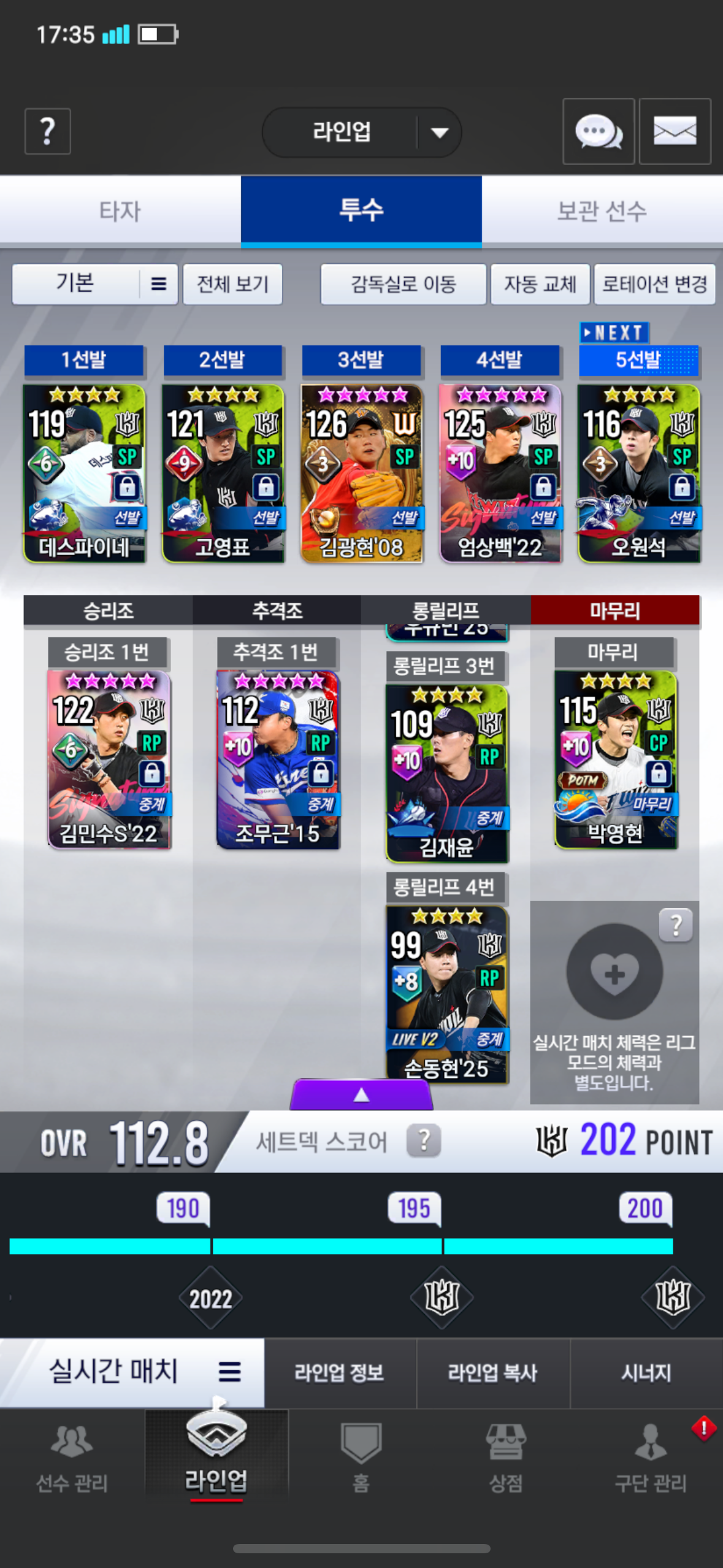 2.국무근에 국에1옵이라서 바꾸기엔 아까워서 불펜진을 22김민수 구조대 우규민 얼리 손동현 국에 셔틀 조무근 셋포용 한자리 나머지 한자리는 어떤 선수로 채우는게 좋을까요?