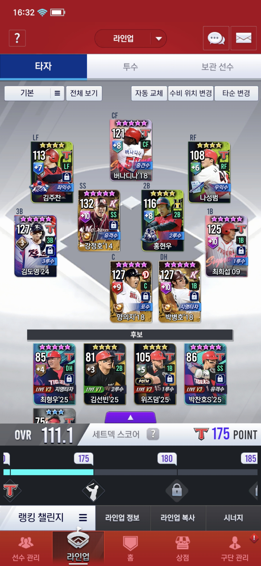좌익수,우익수가 구멍이라 키워서 사용할지 고민입니다.