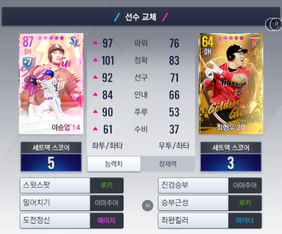 골뽑으로 20최형우가 나왔습니다 (이번에 3장째) 하필 겹치는 포지션이 나왔습니다