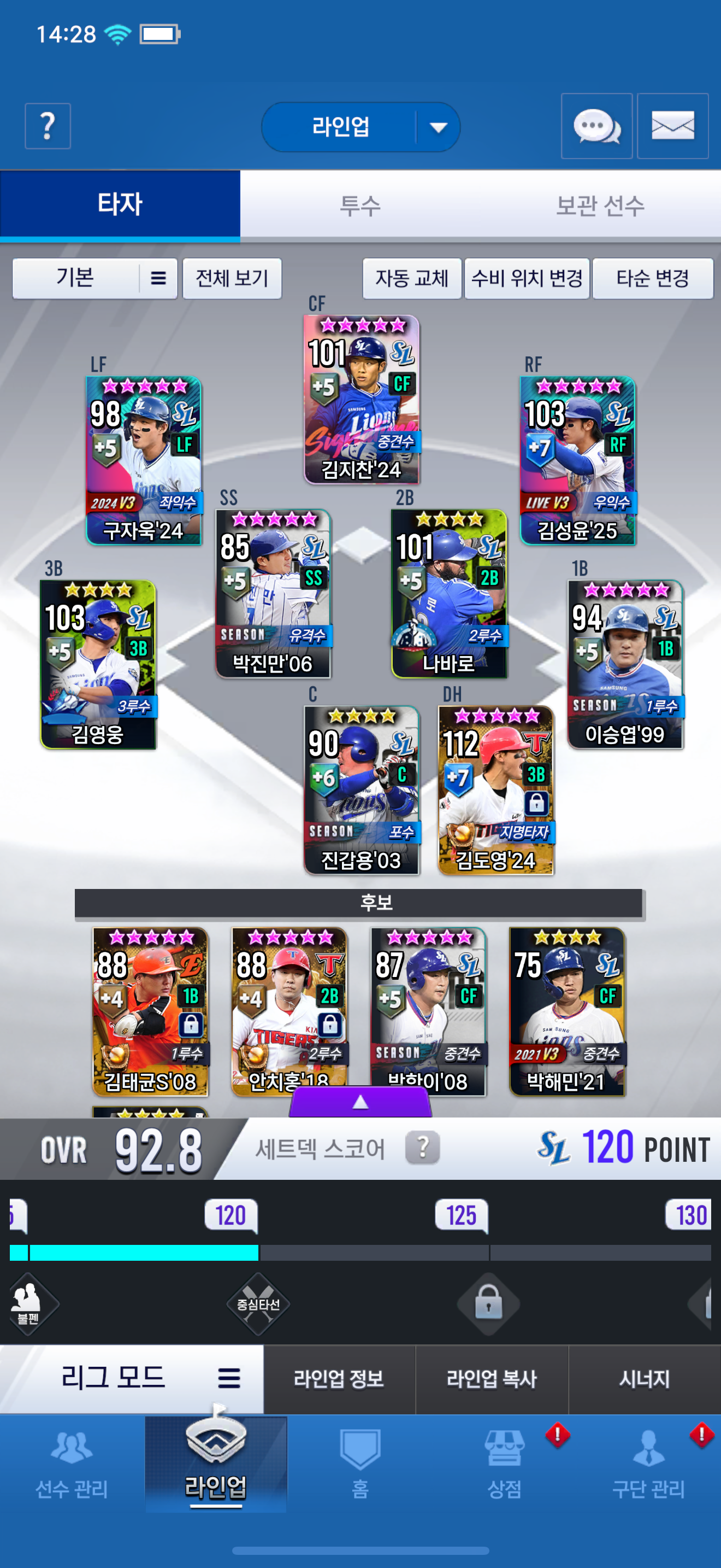 골글 김태균 08을 재료로 골글 2차 교환 하려구 합니다 추천해주실 선수 있나요? 밑에는 현재 제 팀입니다