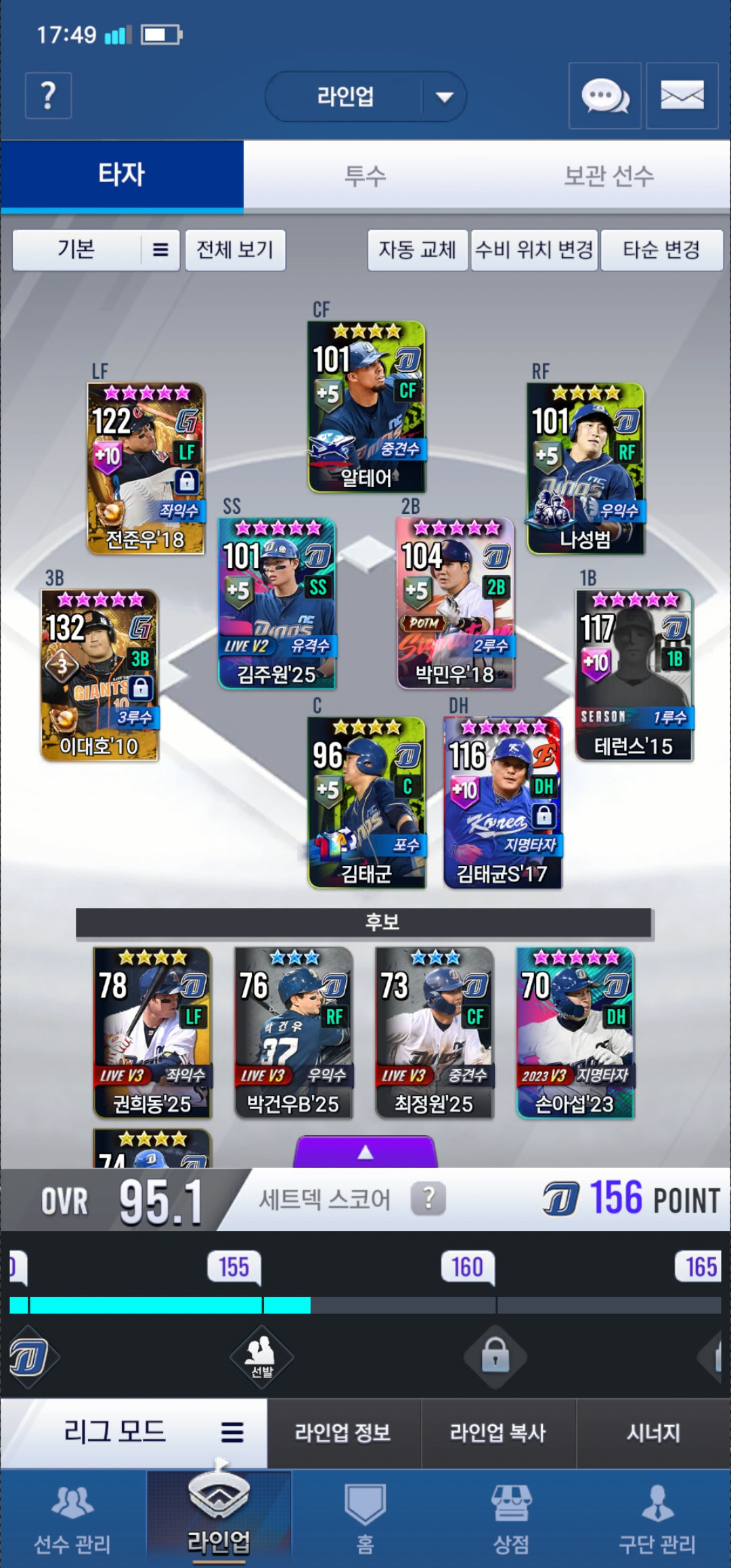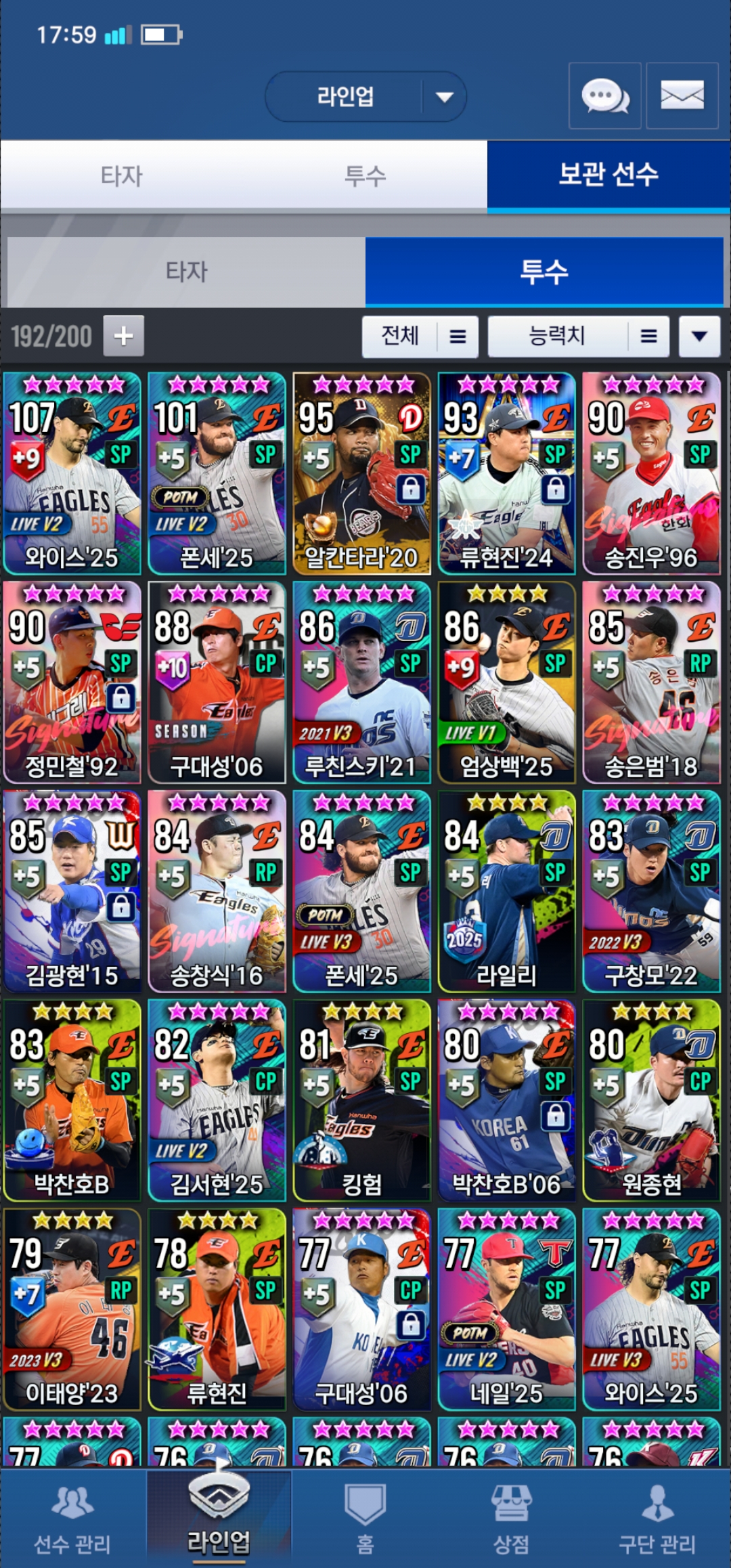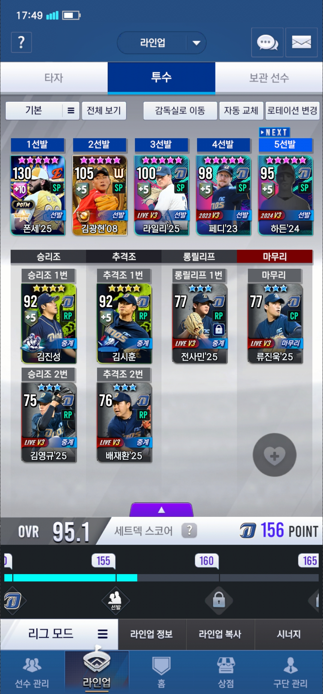 시작한지는 5~6개월(?)정도 지난것 같고 한화에서 nc로 팀을 바꾼지 1달(?) 정도 지난거 같은데 진짜 몇몇 빼고는 다 상태가 안좋아서… 어디를 어떻게 보강해야하는지 알려주시고 도와주시면 감사하겠습니다. 매번 친구가 알려줘서 팀을 바꾸곤 했는데 친구가 컴프야를 접어서…