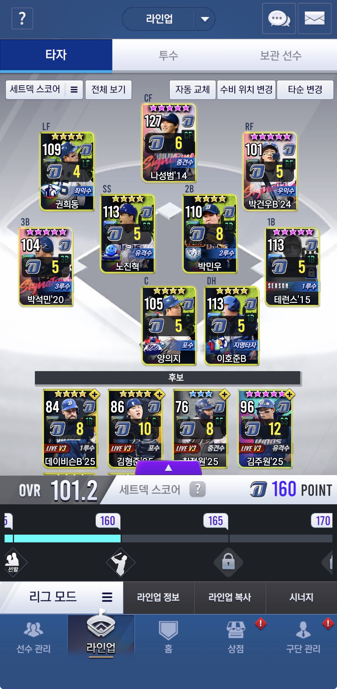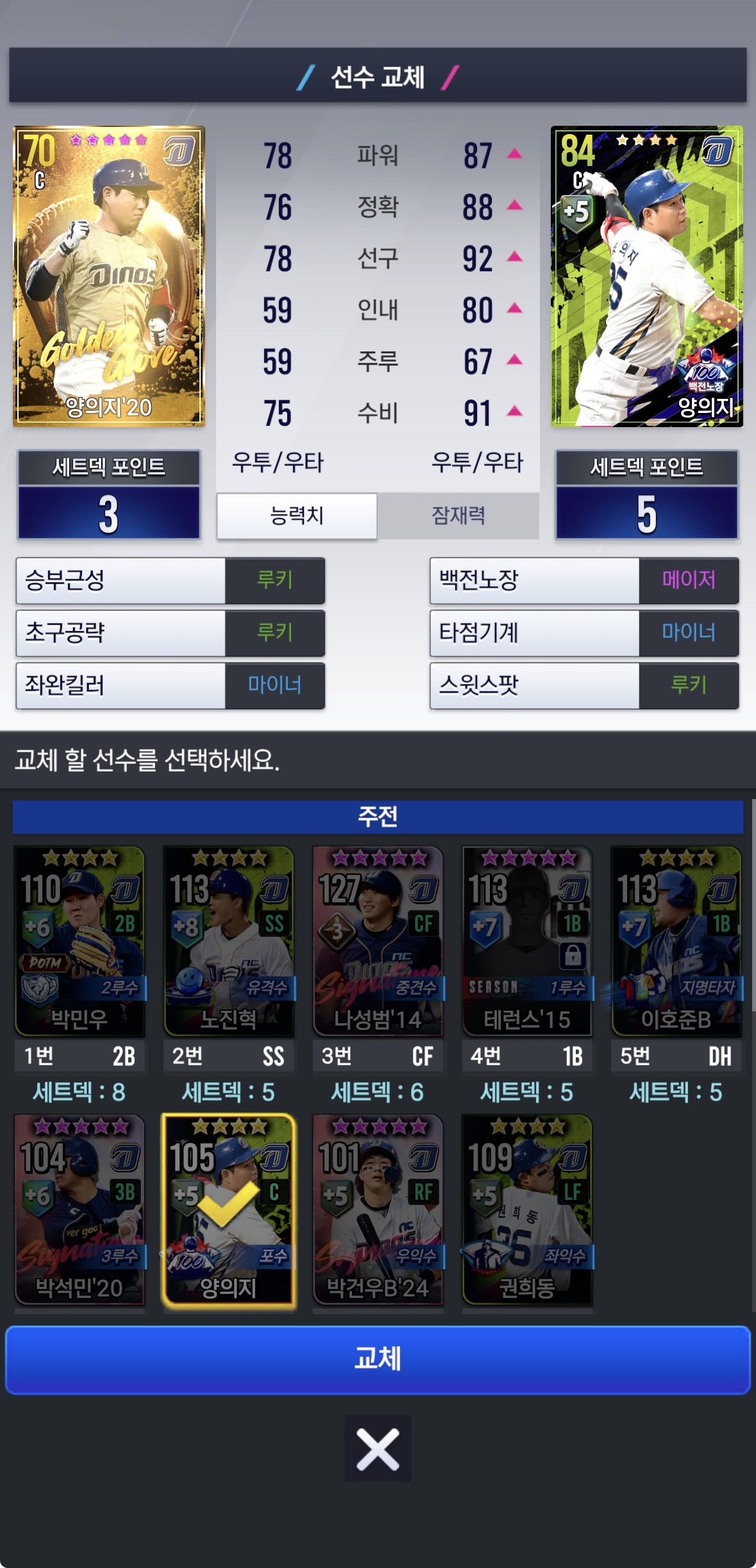 임팩트 백년노장 양의지는 훈련 18레벨까지 최대로 찍었고 특훈도 1레벨 올렸습니다.