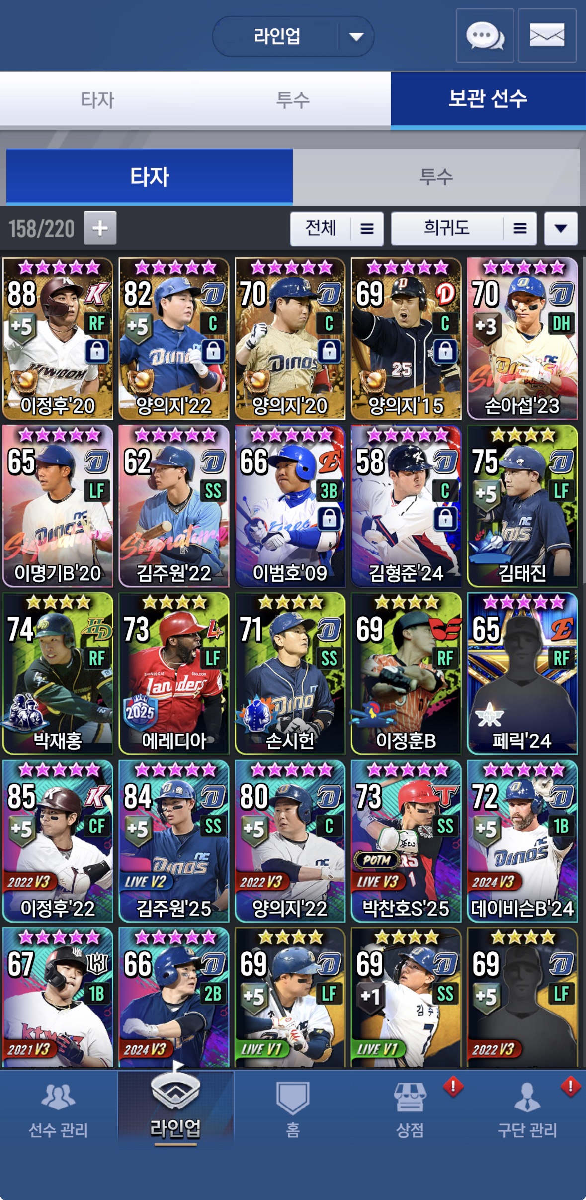 골글 20 양의지가 떴는데 잠시 쓰고 있던 임팩트 백년노장 양의지를 쓸까요