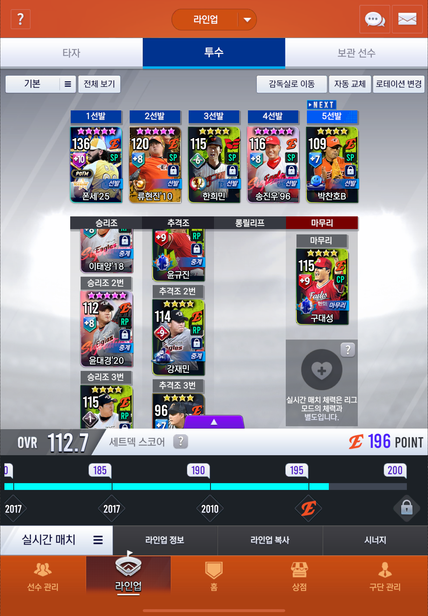 17한화하고 있는 무과금 유저 입니다. 계속 열심히하고 있는데 방향성을 못잡겠습니다. 세트덱 효과 설정 알려주시고 선수 육성 방향성 잡아주심 감사하겠습니다. (가사 문동주 2번 놓쳐서 의욕이 사라졌는데 방향성 잡아주시면 열심히 하겠습니다!)