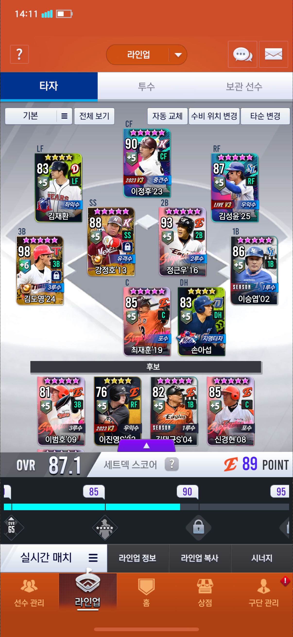 저 시즌 마무리에서 곧 시그 선택팩 얻는데 우익수나 1루중 뭘 먼저 바꿀까요? 우익수는 18호잉으로