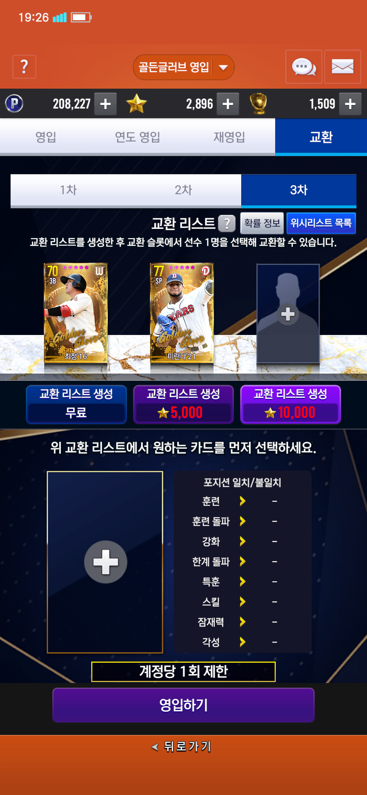 3차에 미란다 나왔는데 10000스타 아끼고 교환할까요?그리고 11최정 각성재료로 쓸까요 아니면 그냥 3차 돌릴까요?