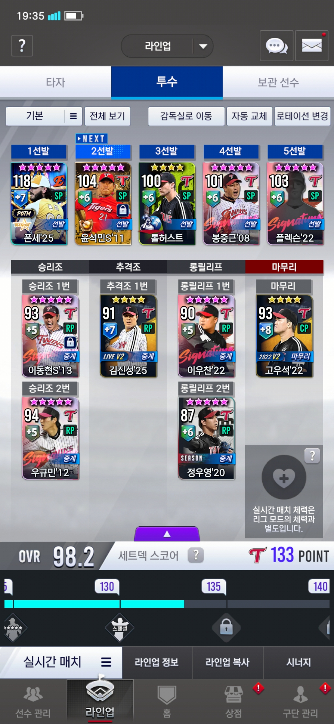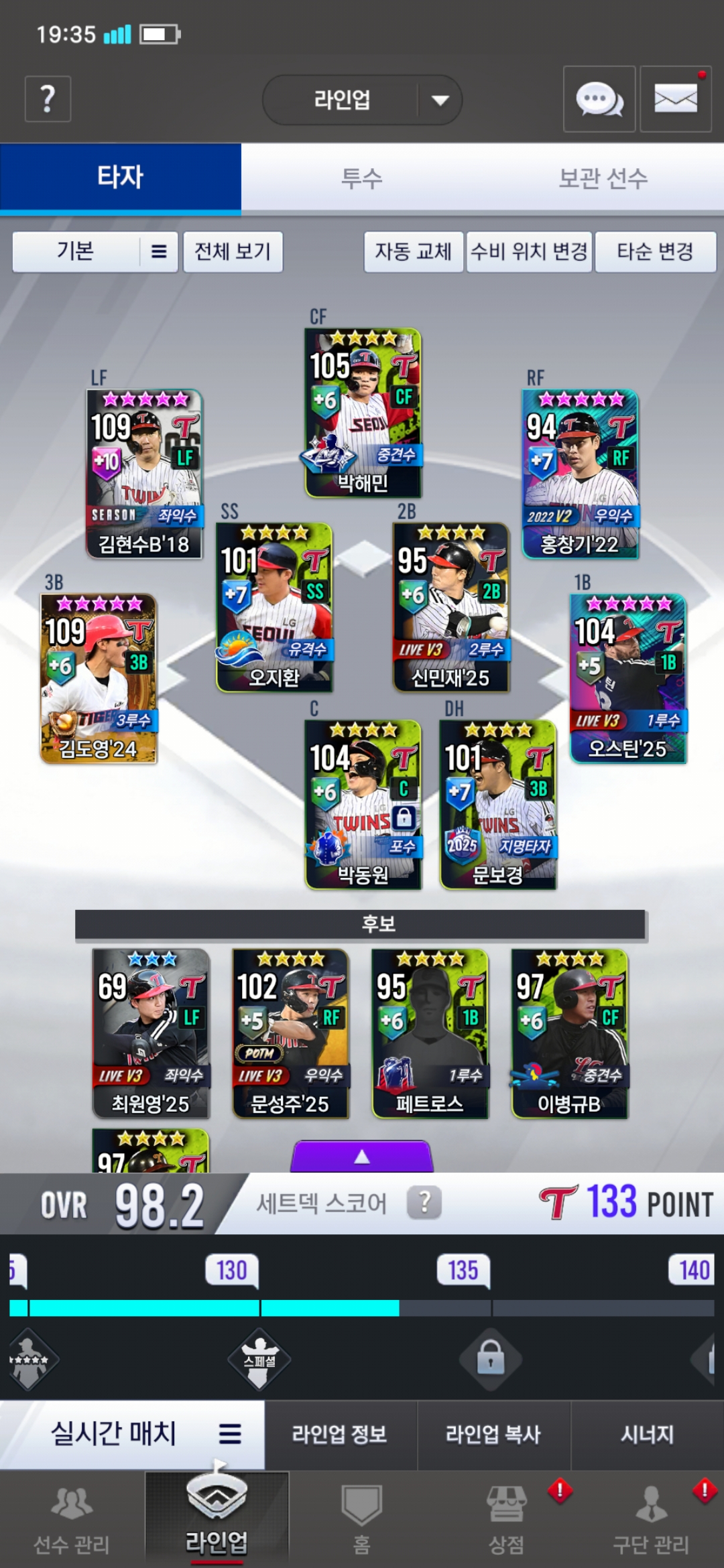 타자 한정 현역 선수를 좋아하는 제 팀입니다! 조언 부탁드립니다! 감사합니다!