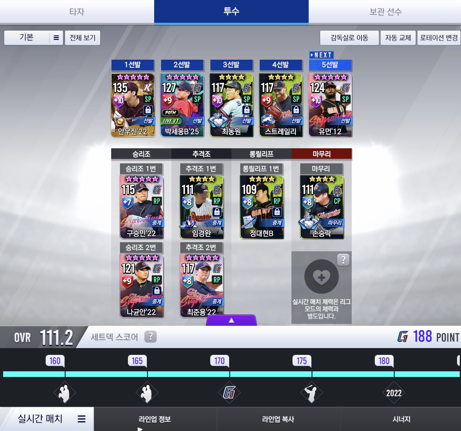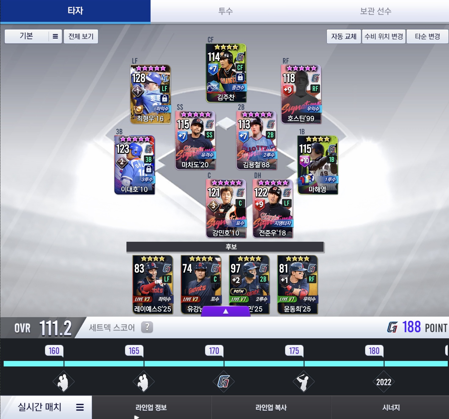 현재 이렇게 구성중인데 중견수에 골글 22이정후랑