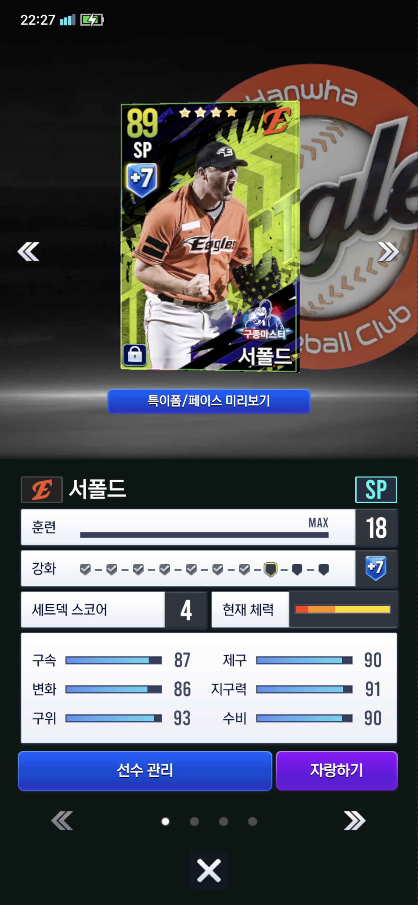 구종이 워낙 좋아서요. SR띄우고 쓰면 괜찮지 않을까요?