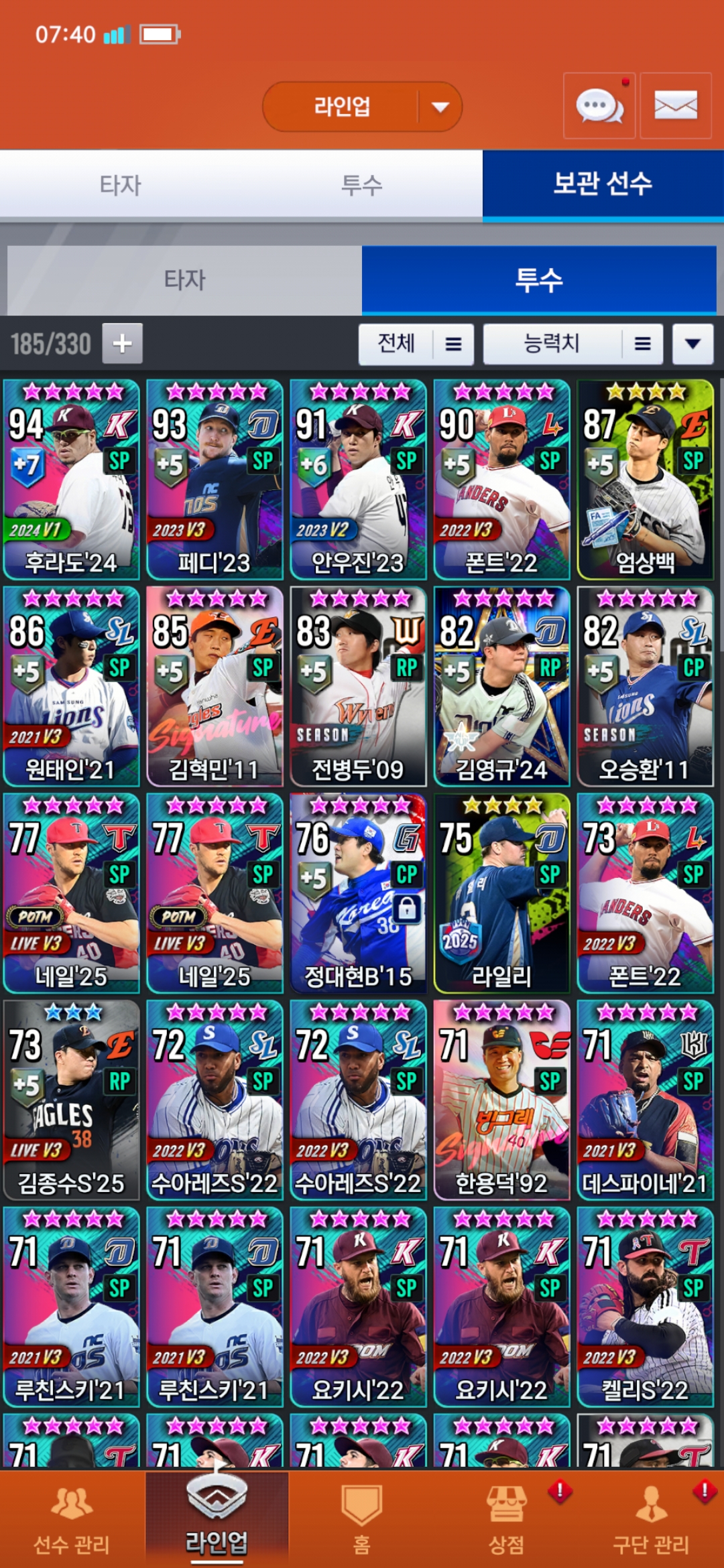 일단 저는 컴프야를 시작한지 400일이 조금 넘었는데요 불펜투수들이 약한것 같아서 고수분들한테 추쳔을 받아볼려고 해서 이 글을 씁니다 제 라인업 봐주시고 투타 추천해주시면 감사하겠습니다
