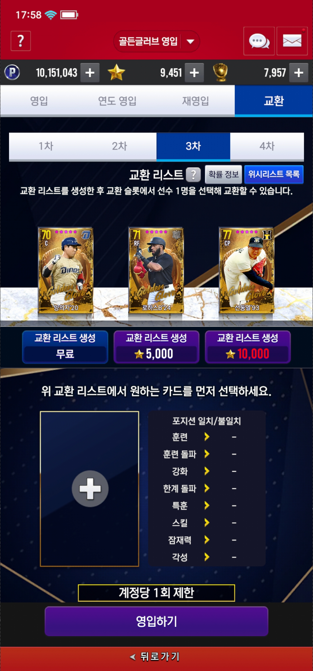 질문 & 답변 기아 3차 골글 조언 부탁드립니다 븨텀 2025-12-17 18:02 94 1 공유 공유 URL 복사 페이스북 왓츠앱 카카오톡 라인 레딧 닫기 공유 20양의지 교환할려하는데 뭐랑 해야할지 고민 중입니다. 0 0 댓글 1
