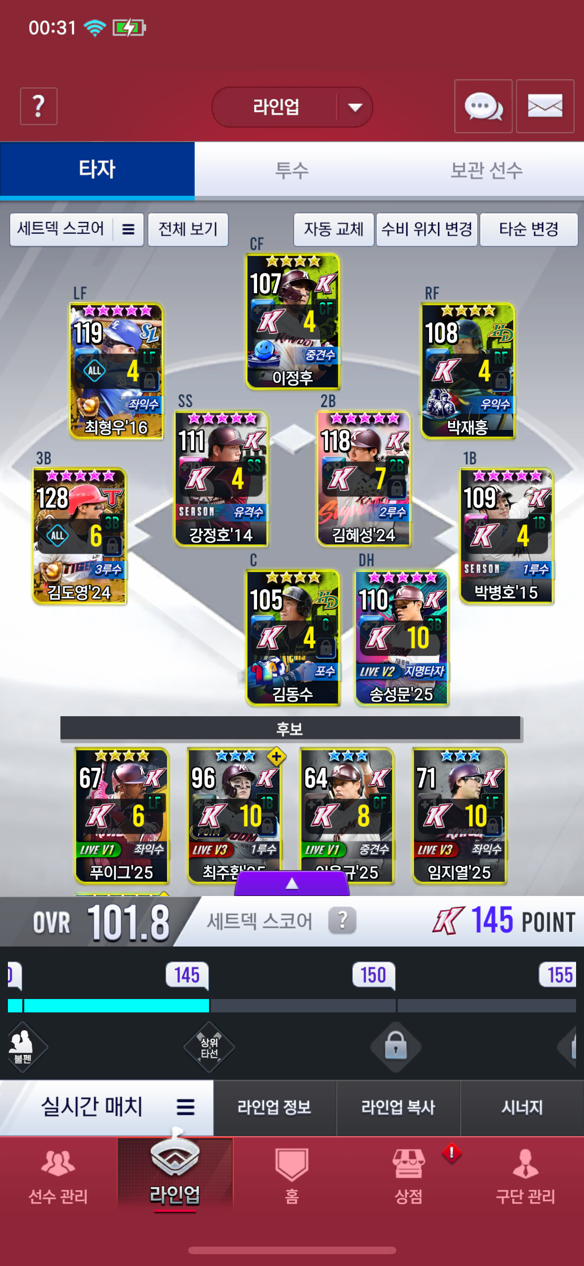 좌익수에 3차 골글 교환에서 16 최형우가 나와 채용했었는데 이번에 4차에서 첫 시도에 24 구자욱이 나와서 고민중입니다.