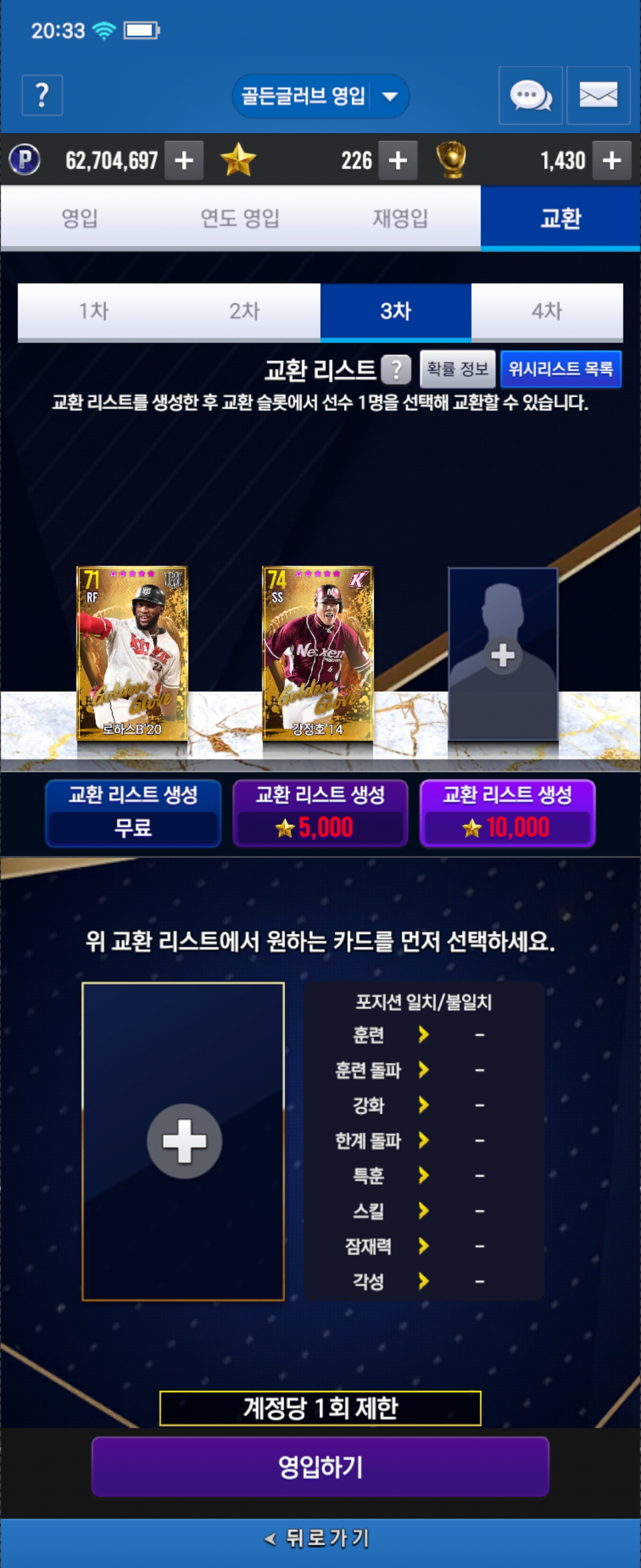 지금 덱 상황이 14덱으로 가려고 해서 강정호를 먹으려고 하는데