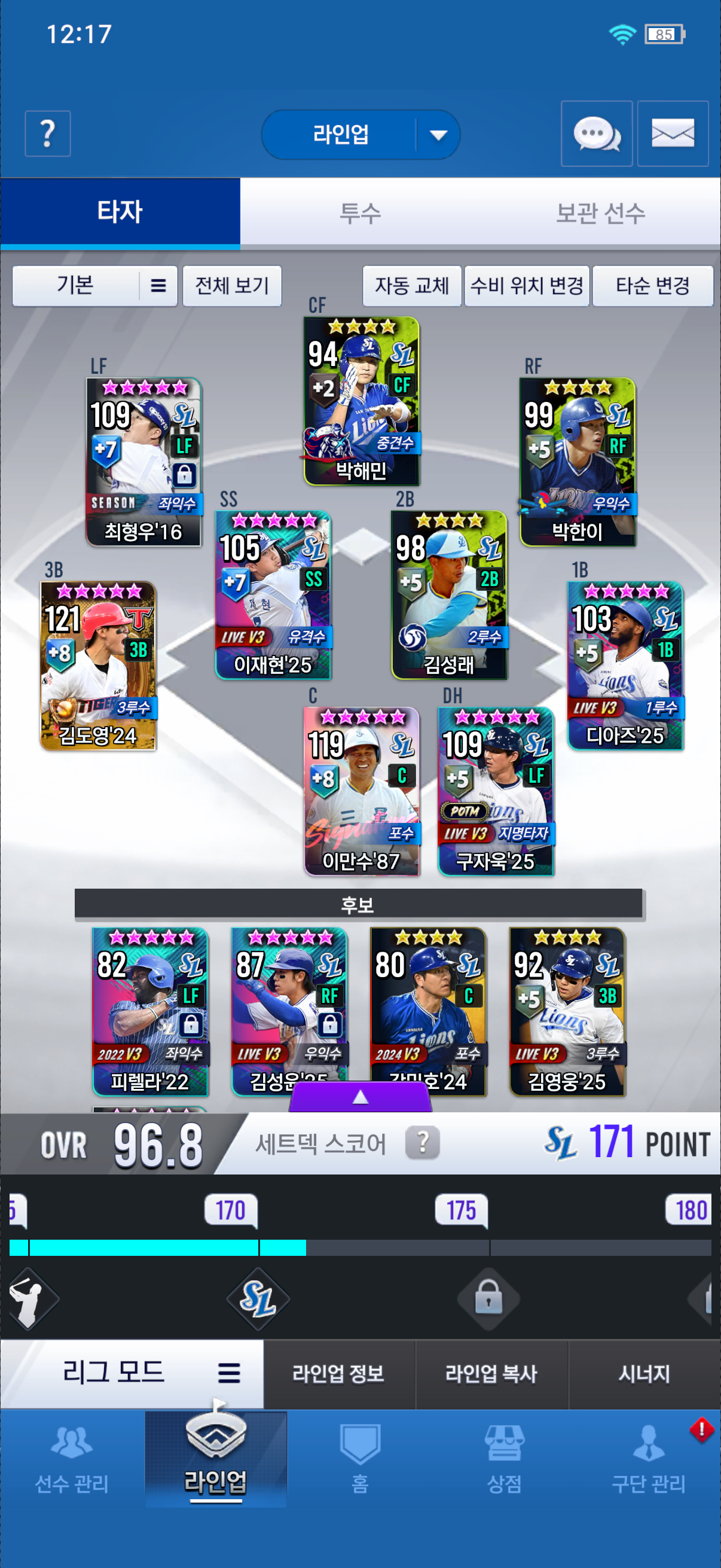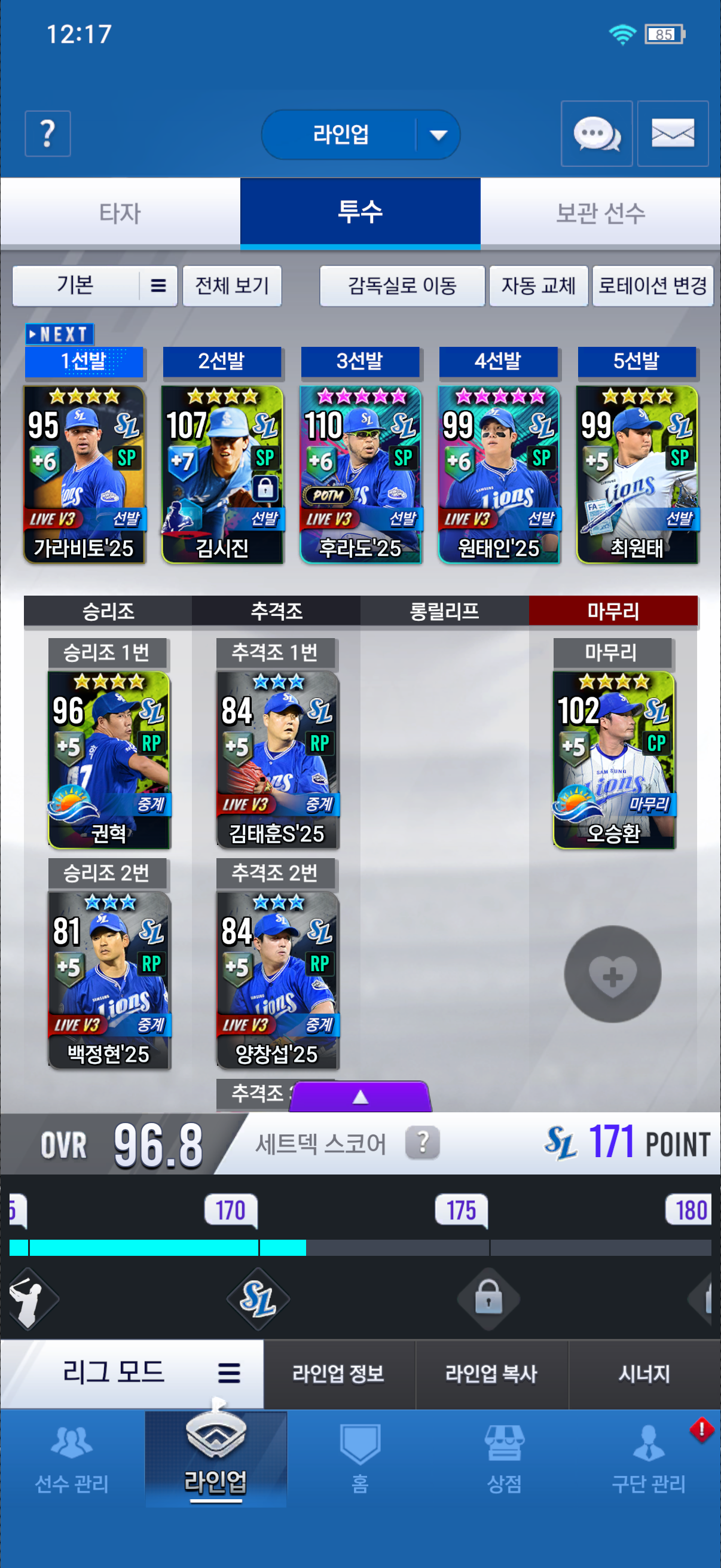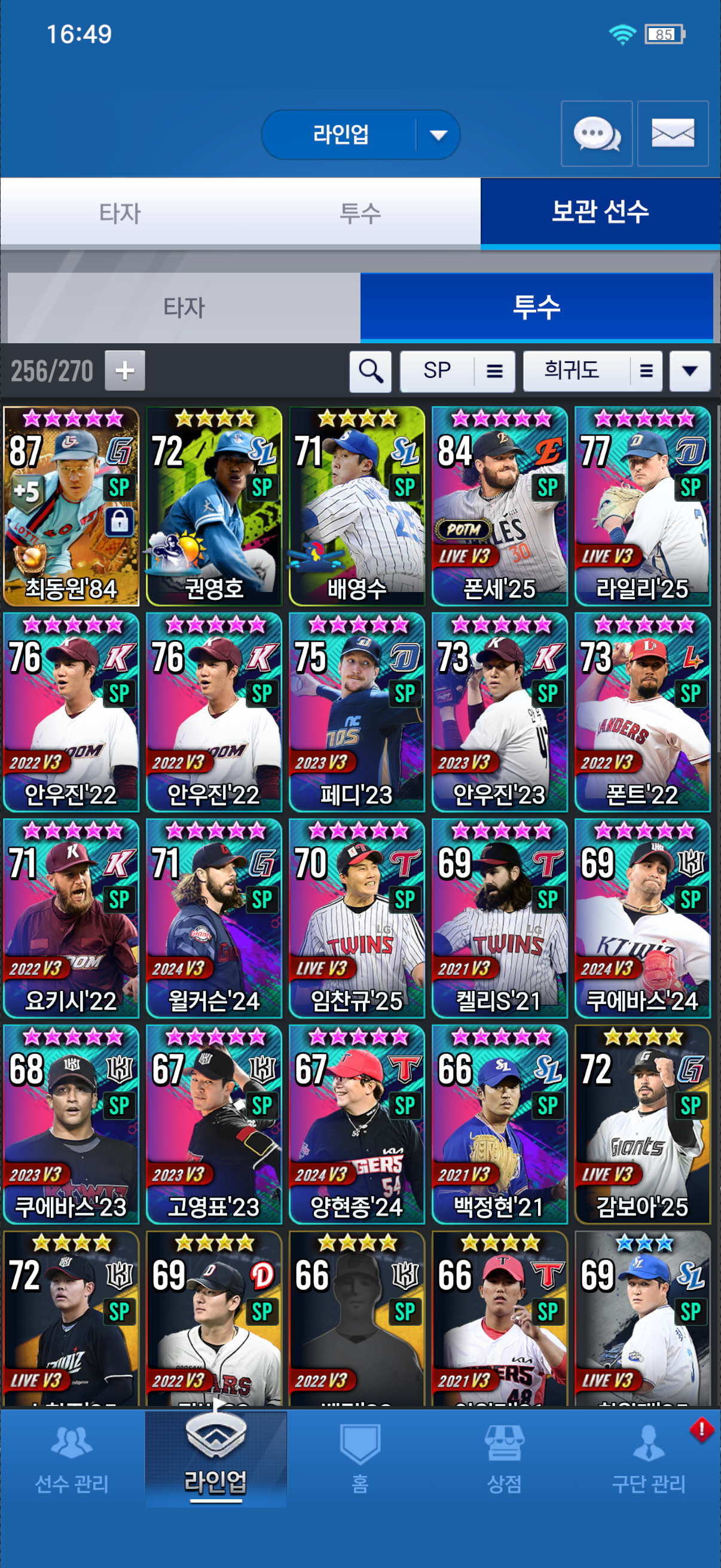이만수 한돌1회 강화 1회, 김시진 한돌2회,강화 2회(이만수나 김시진은 최대한 기간동안 둘 다 강화 한단계 올려서 10강을 목표로 사용)