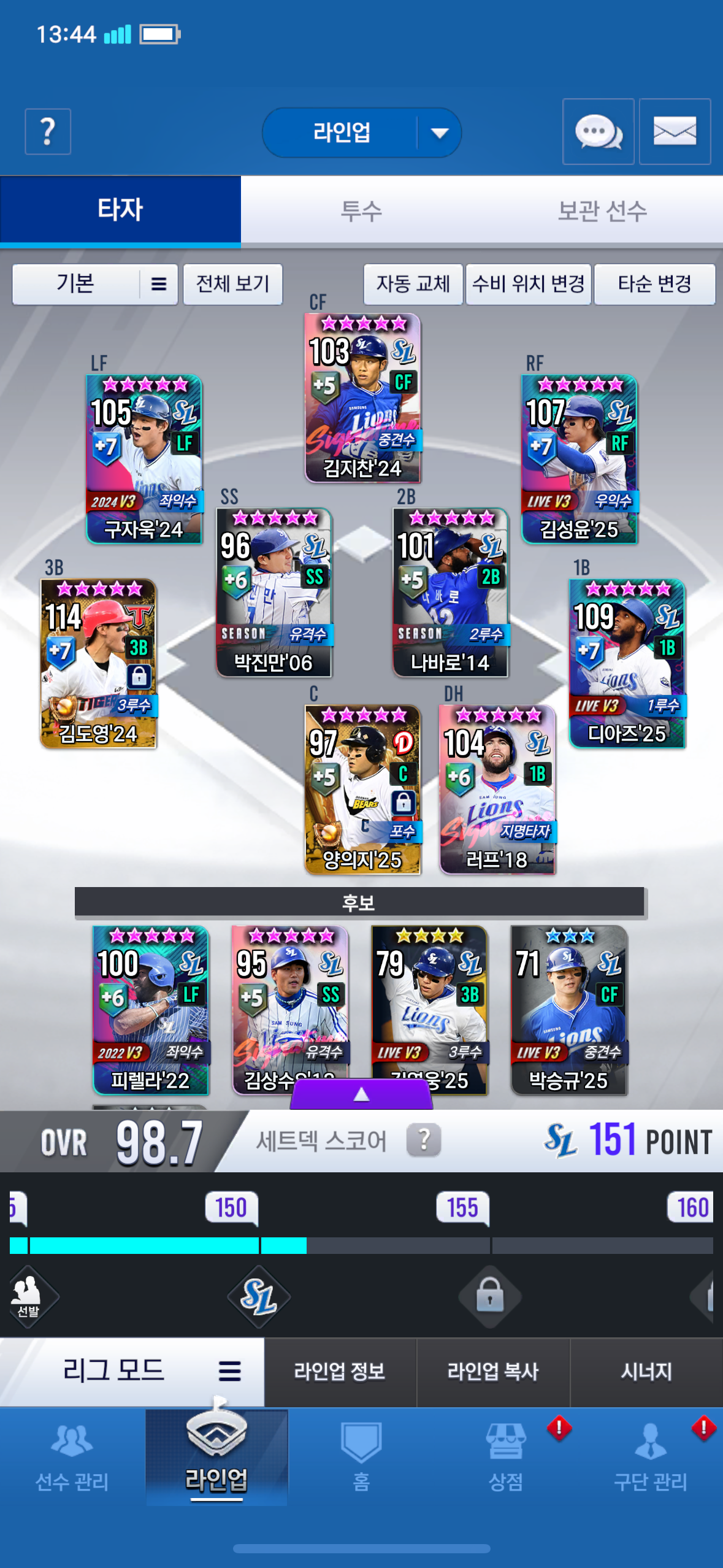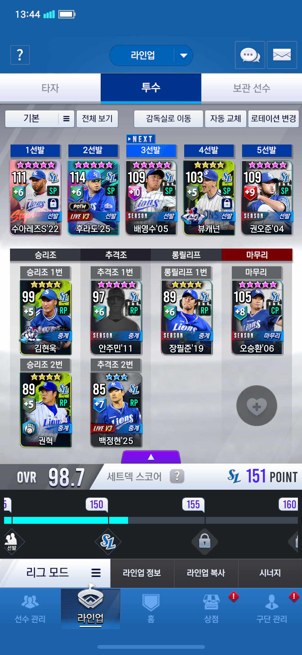 RP : 키플 권오준(선발에 사용중이라 고민됩니다)