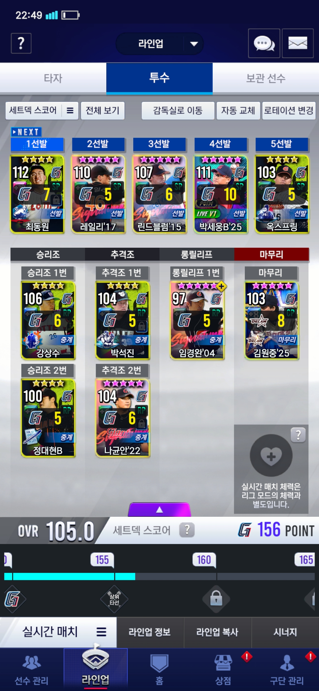 질문 & 답변 안우진을 쓰려면 누굴 빼야 할까요? 10LEEDH 2025-12-29 22:57 156 0 공유 공유 URL 복사 페이스북 왓츠앱 카카오톡 라인 레딧 닫기 공유 현재 팀 상황이고 안우진을 쓴다면 누굴 빼고 써야 할까요? 0 0 댓글 0