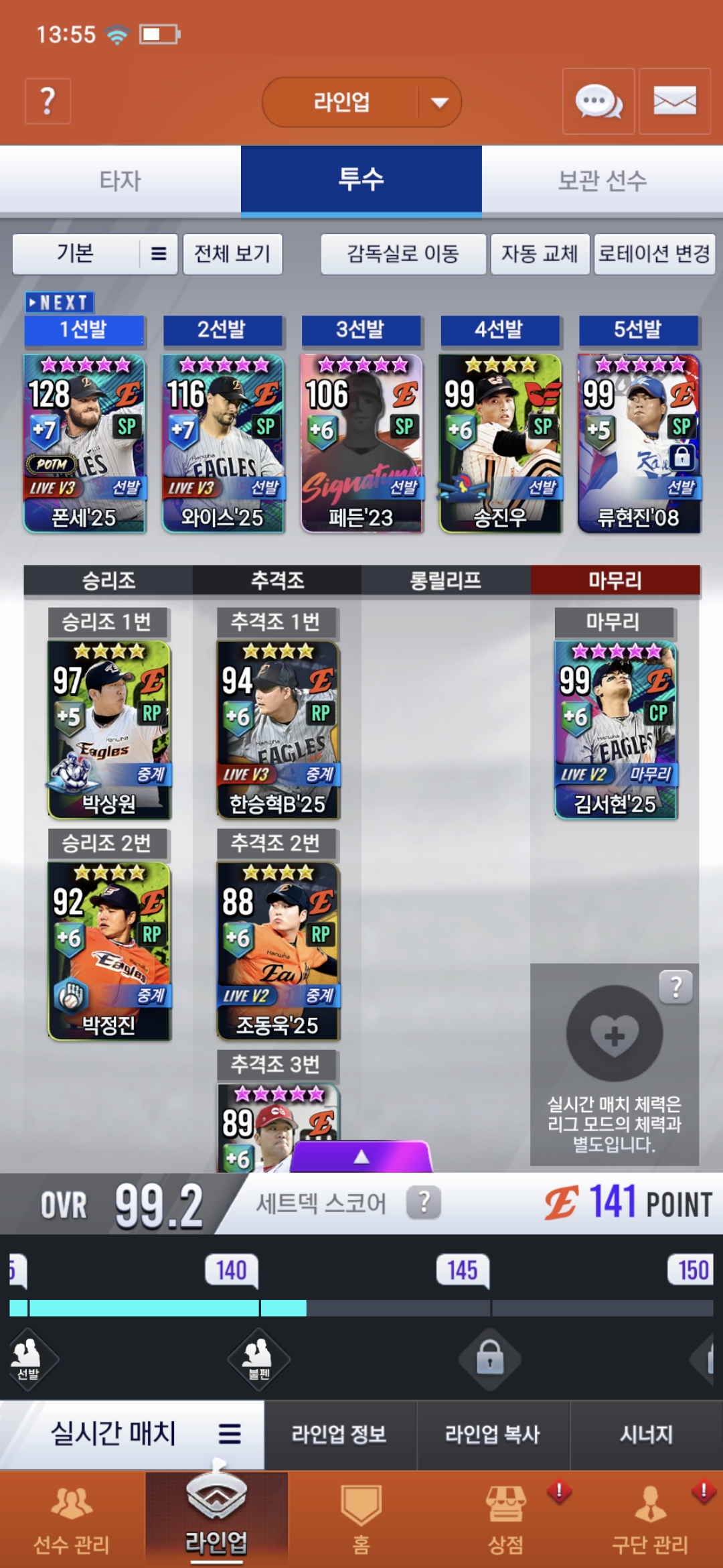 우선 한화이글스팬이라서 구단선택했고요(무과금러)