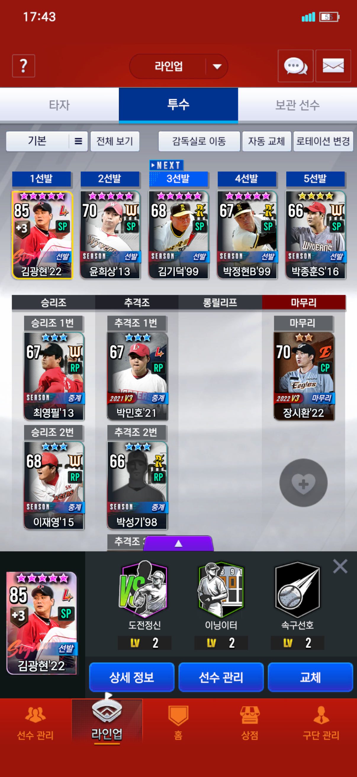 어제 새계정 리세로 22김광현 뽑았는데 갈아탈만 한가요?