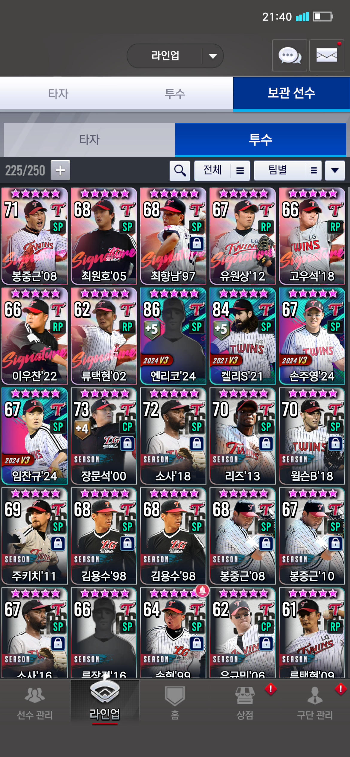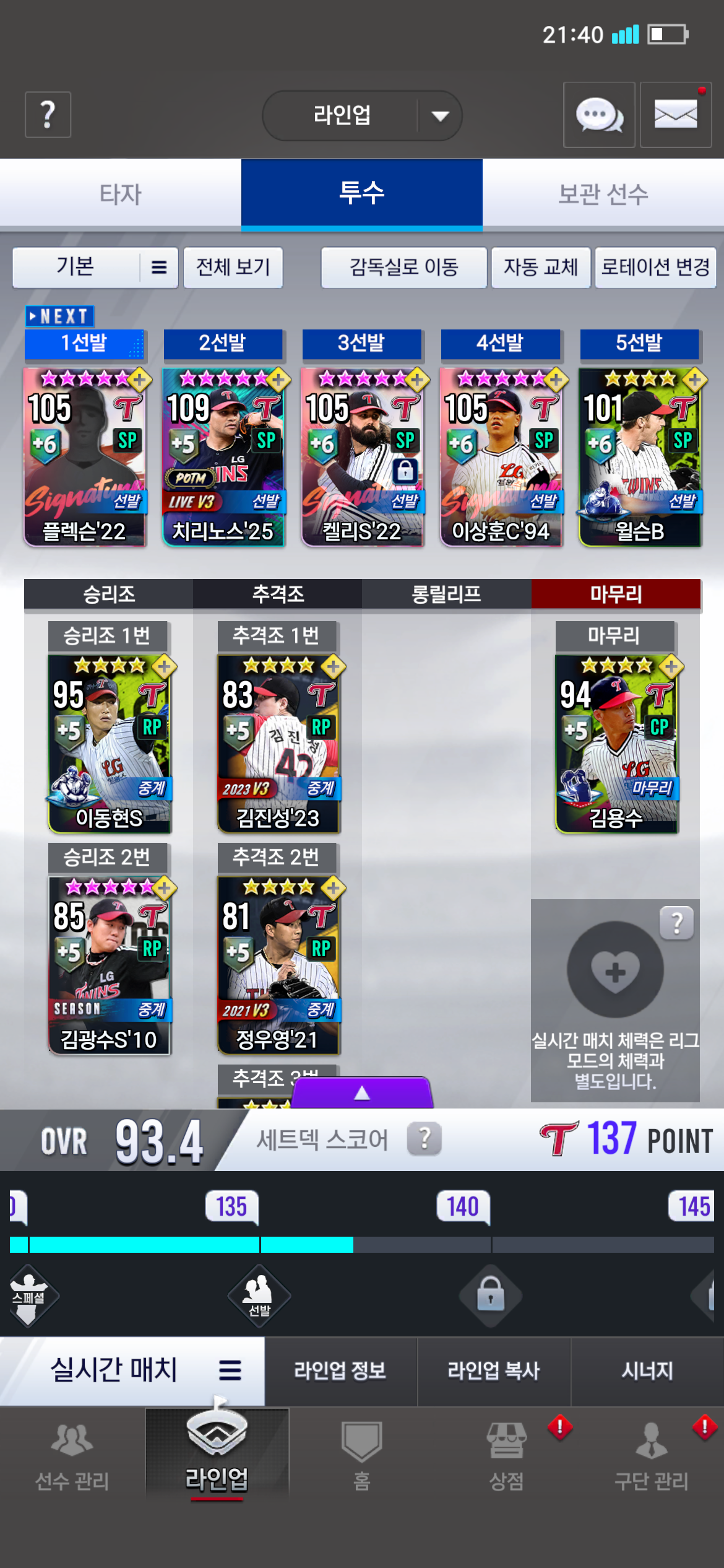 당연히 폰세안미페 나오면 그거 쓰겠지만 뭐 하늘의 뜻이라니 우선은 치리 대신 봉중근으로 선발 종료할까 고민입니다..