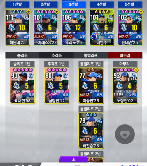 그리고 2차 영입도 준비중인데요~ 1차교환은 아직 하지않은 상태입니다 2차영입을 먼저 해서 16최형우가 안나오면 선택팩에서 16최형우를 할까 생각중인데 어떻게 해야할지 조언좀 해주세요~ 그리고 3루수 2차교환때 김도영을 최정으로 바꿔야할까요? 도움좀 주시면 감사하겠습니다 과금은 계획이없습니다!