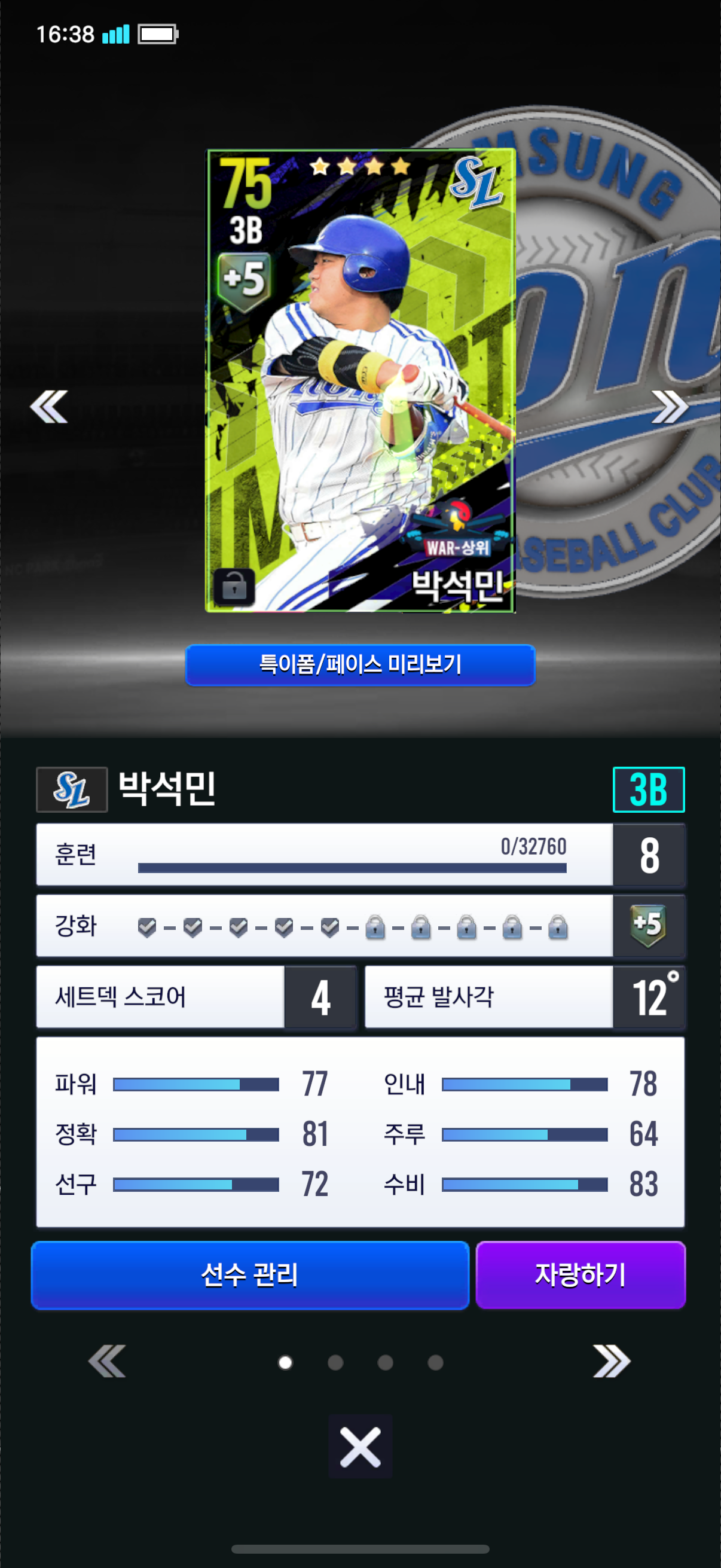 그리고 3루수에 박석민 war-상위 카드 떴는데