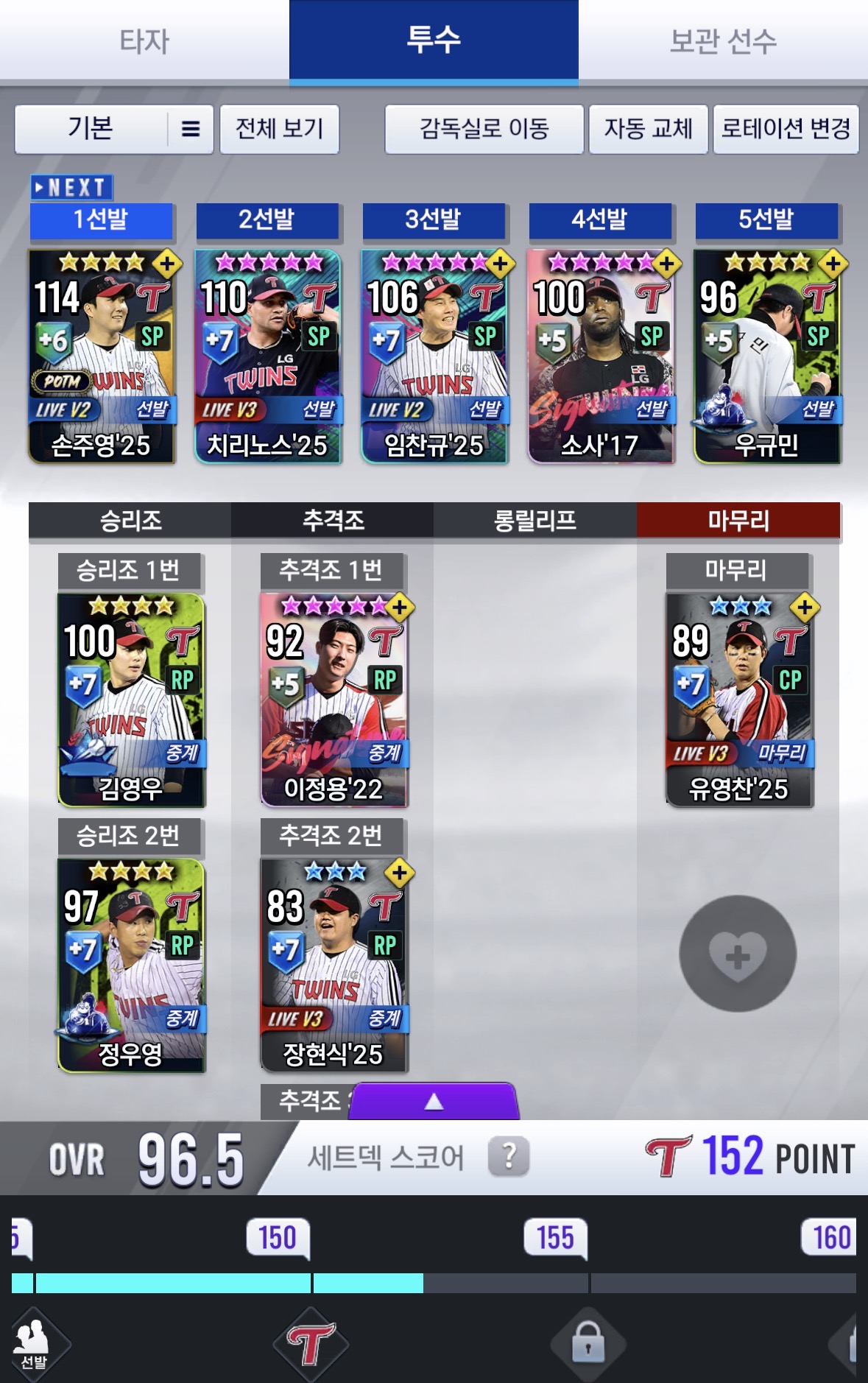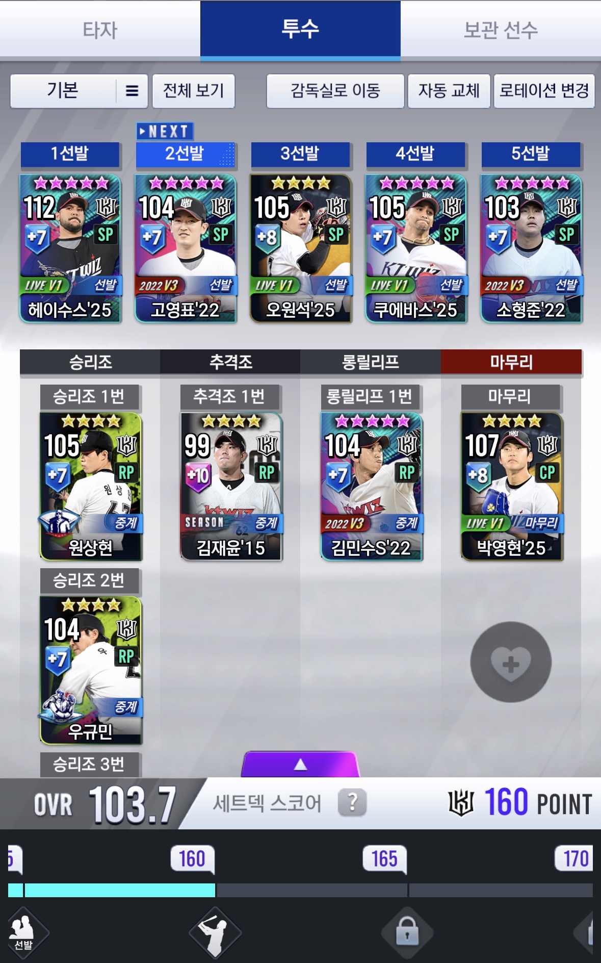 제가 좀 여러팀을 키우는 걸 좋아해서 여러개의 계정을 키우다보니 힘들어서 그런데 본계는 삼성계정이 따로 있구요 부계로 키울만한 계정 2개만 추천해주세요! 참고로 투자한 시간은 kt → 한화 → ssg → lg 순서입니다!!