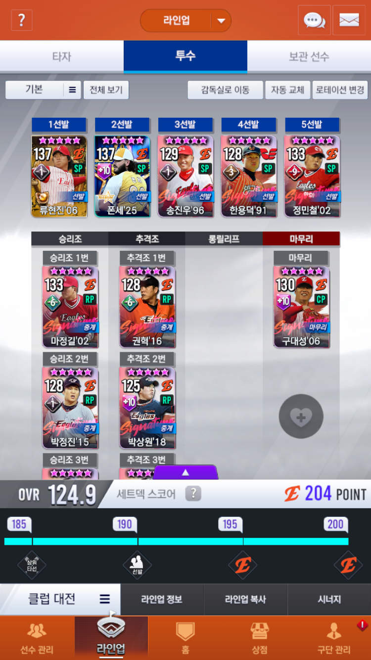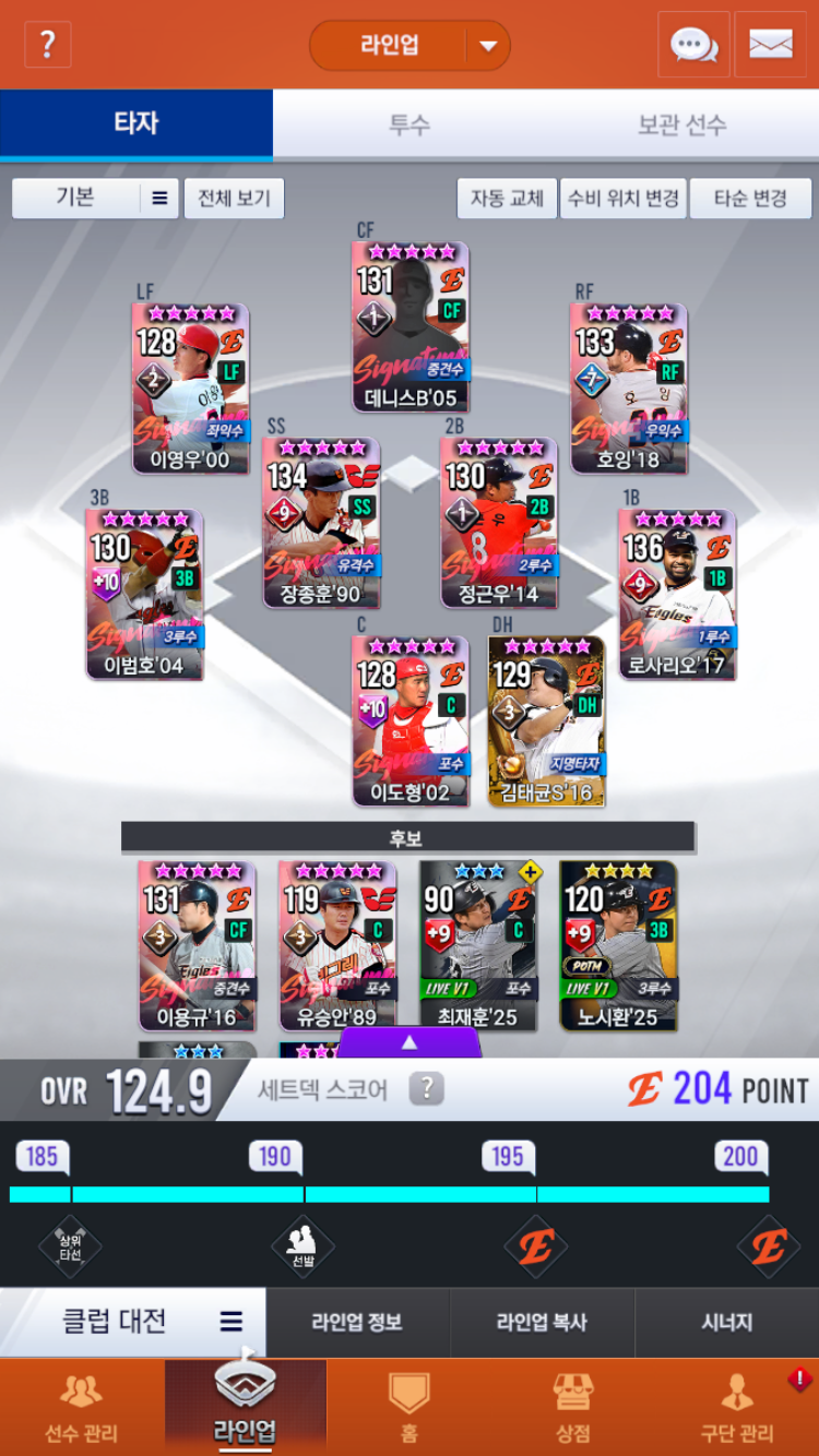순수 한화 선수들만 기용하는데, (계속 그럴 생각이긴 합니다만) 타팀의 높은 능력치의 선수를 기용한다면 변화가 있을지,