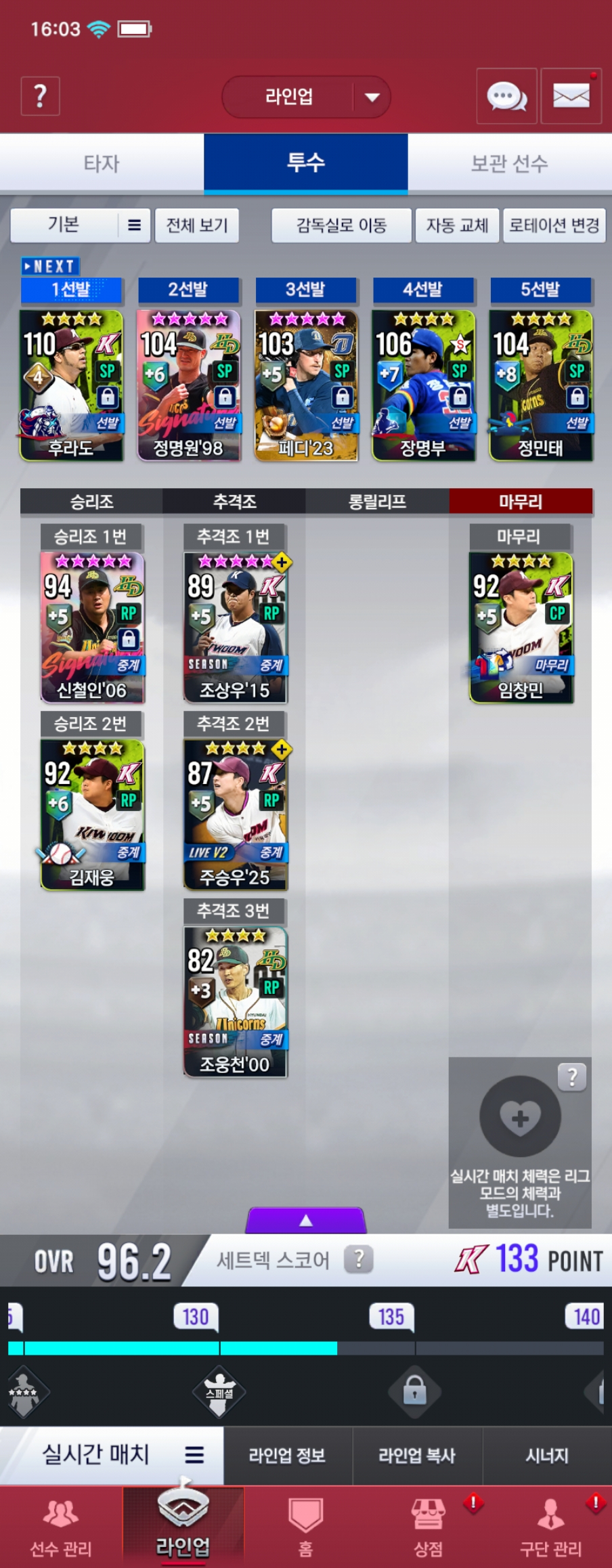 큠 선발 정명원 빼고 골우진 넣을까요 아니면 페디 빼고 골우진 넣을까요??