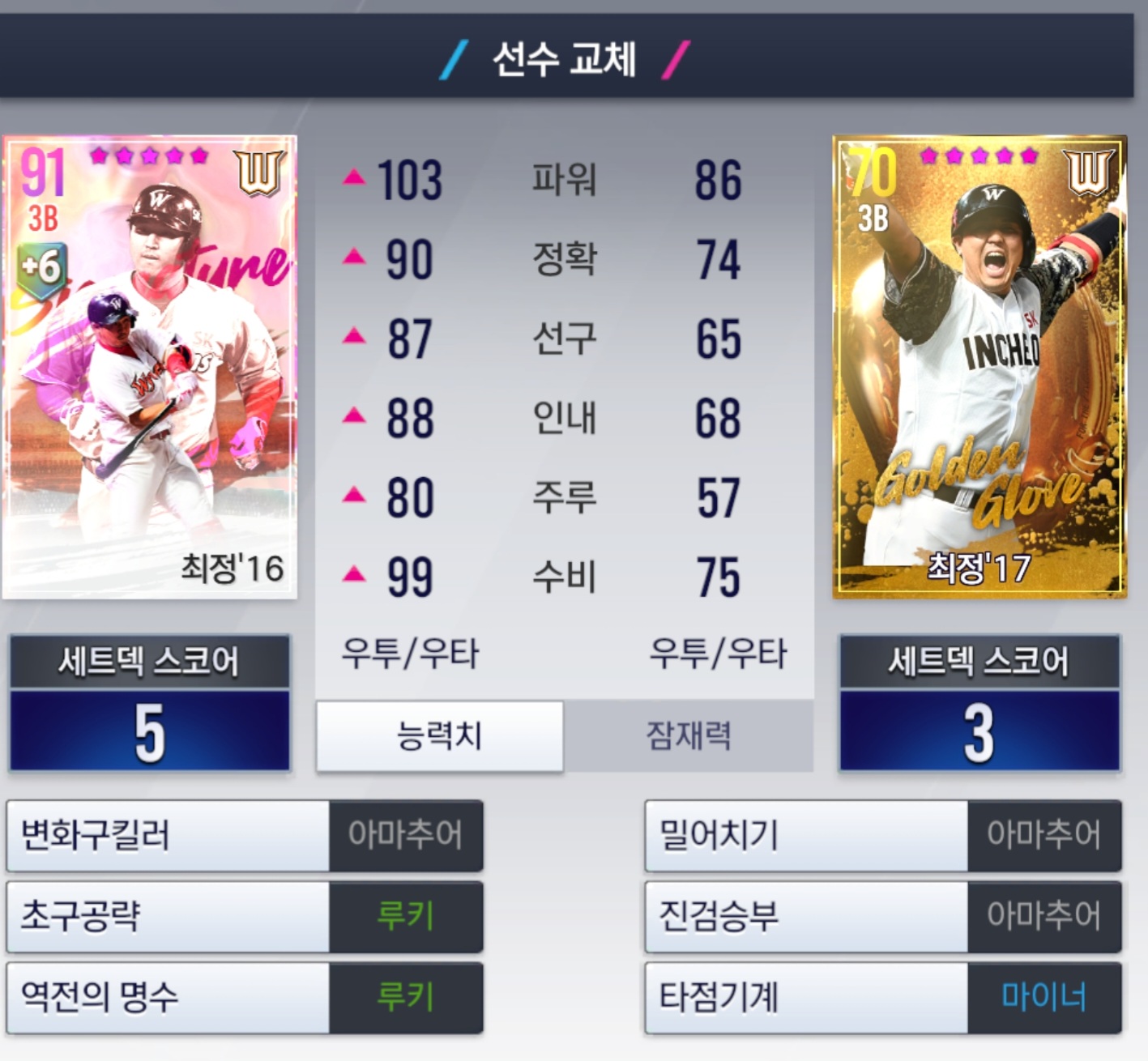 16시그최정에서 17골글최정으로 계승가능한가요?
