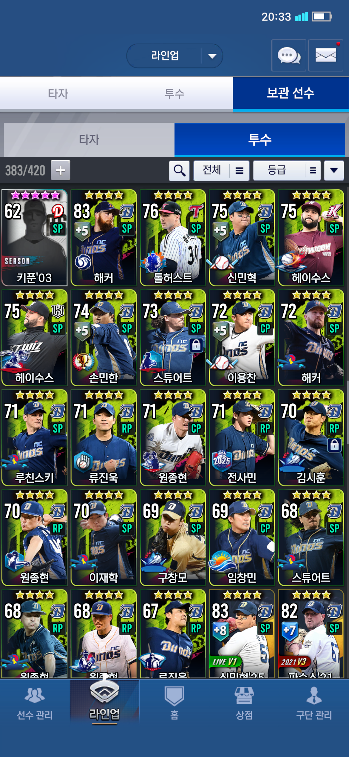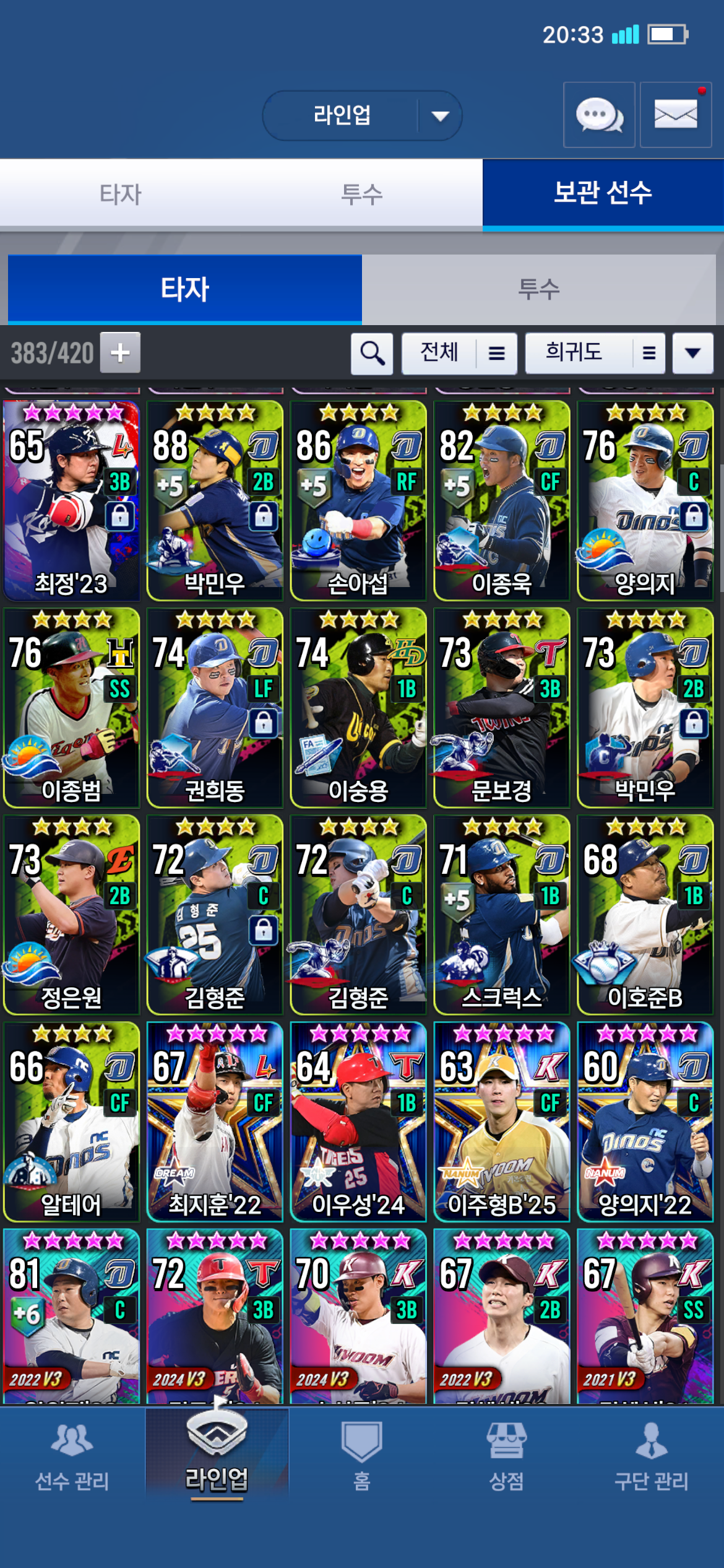 지금 워상선택팩1 임팩선택팩3 대표타자선택팩1 철완선택팩1 있는데 조언부탁드립니다