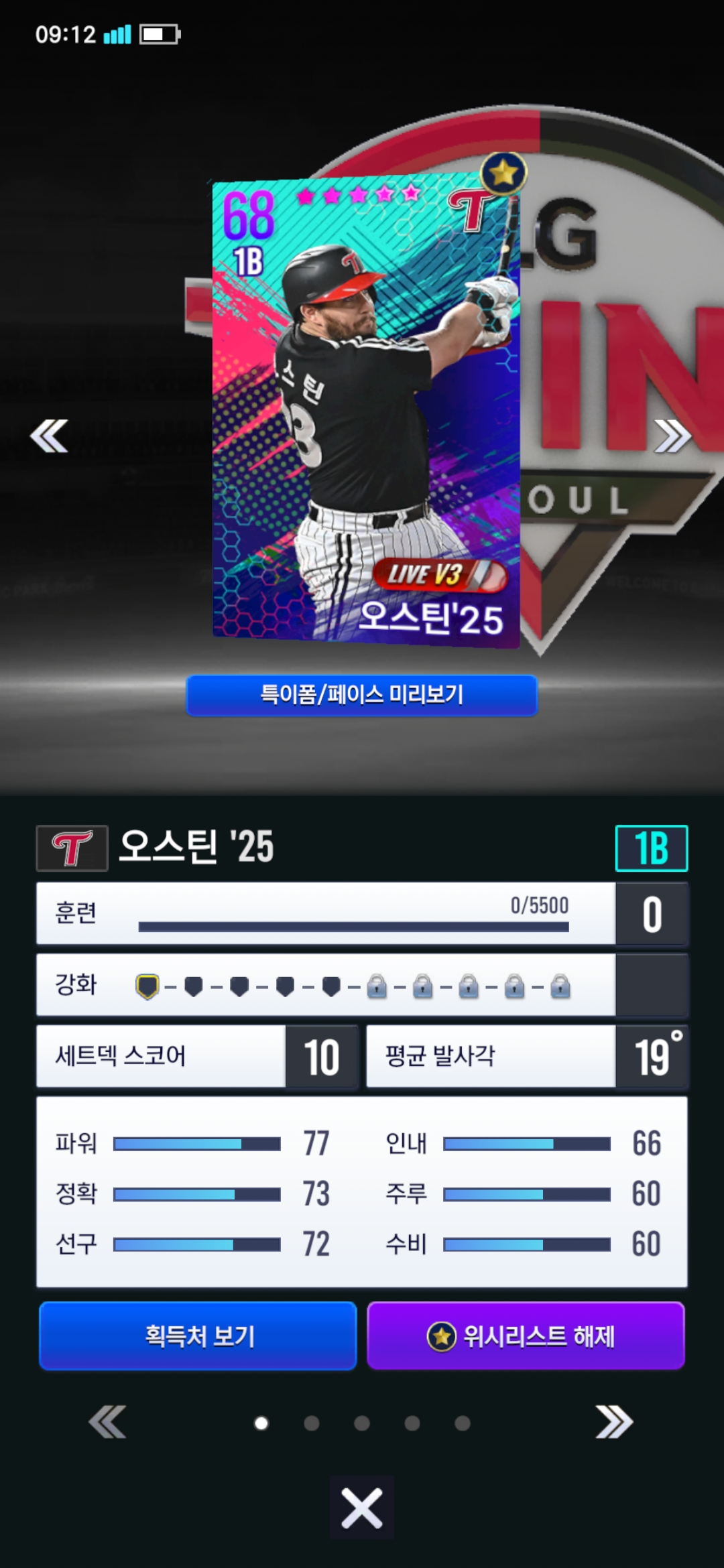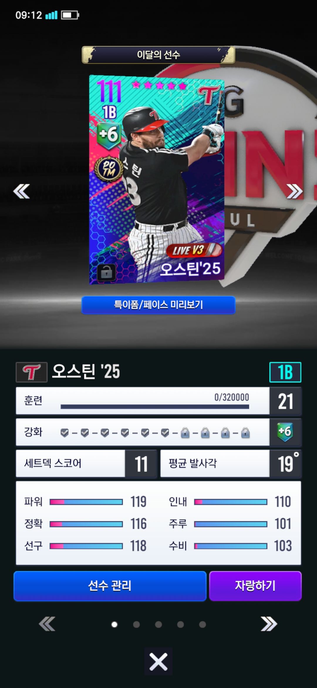 요건 지금 제 오스틴입니다. 그리고 현재 1루에는 99이승엽이 있고 지타에 오스틴입니다.