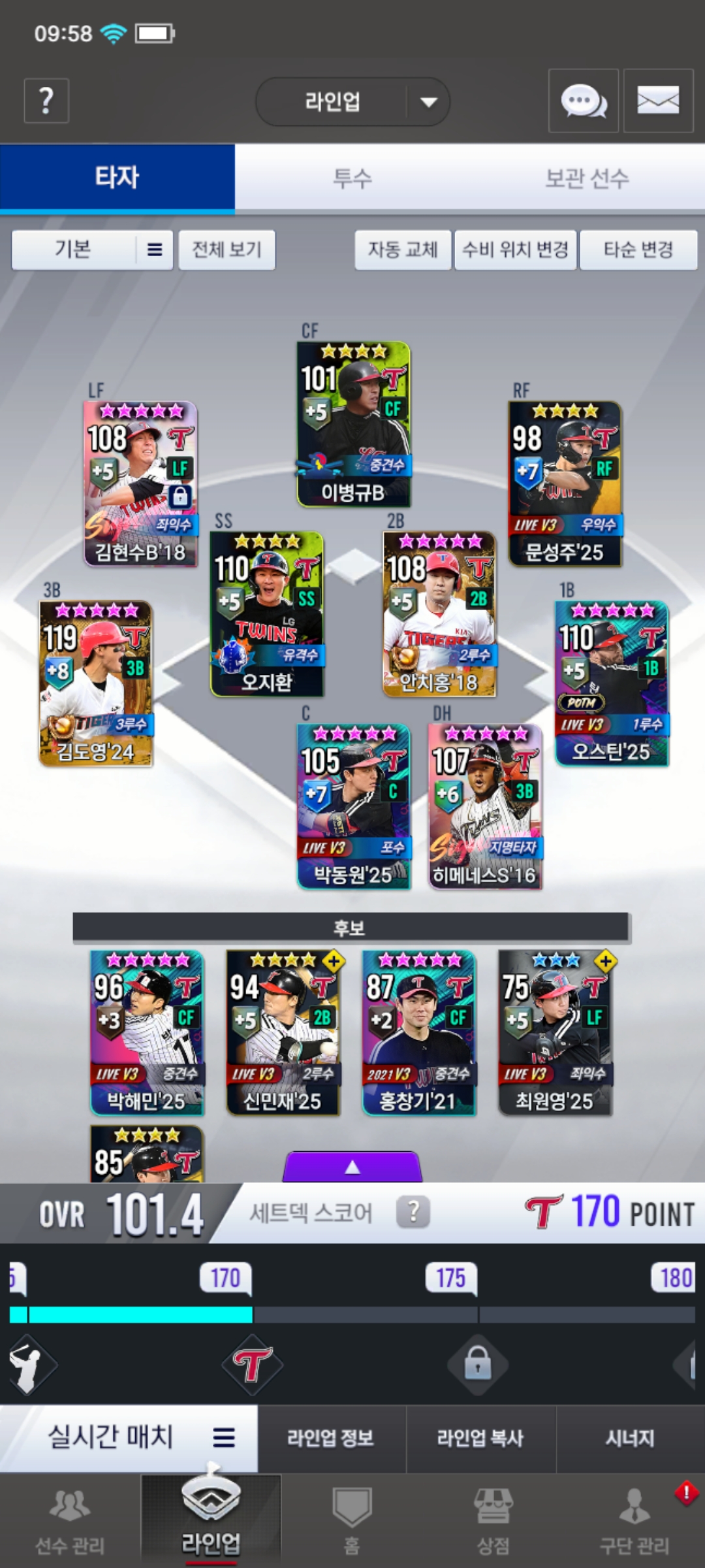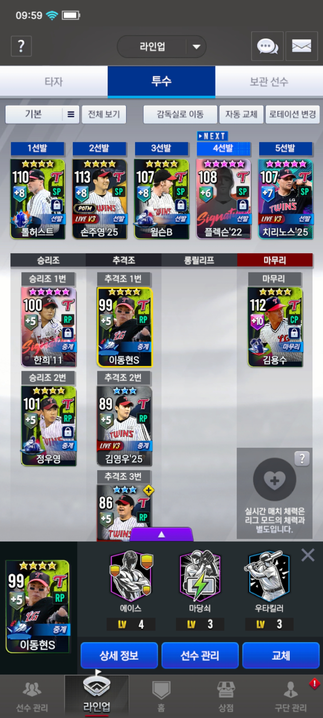 질문 2. 보통 골고루 키우라고 7,8강 많이 다시라고 하셔서 실천 중인데요, 어떤 분은 타점배틀때문에 중심타선 3명을 풀육성하고 넘어가시라고 하는데요.