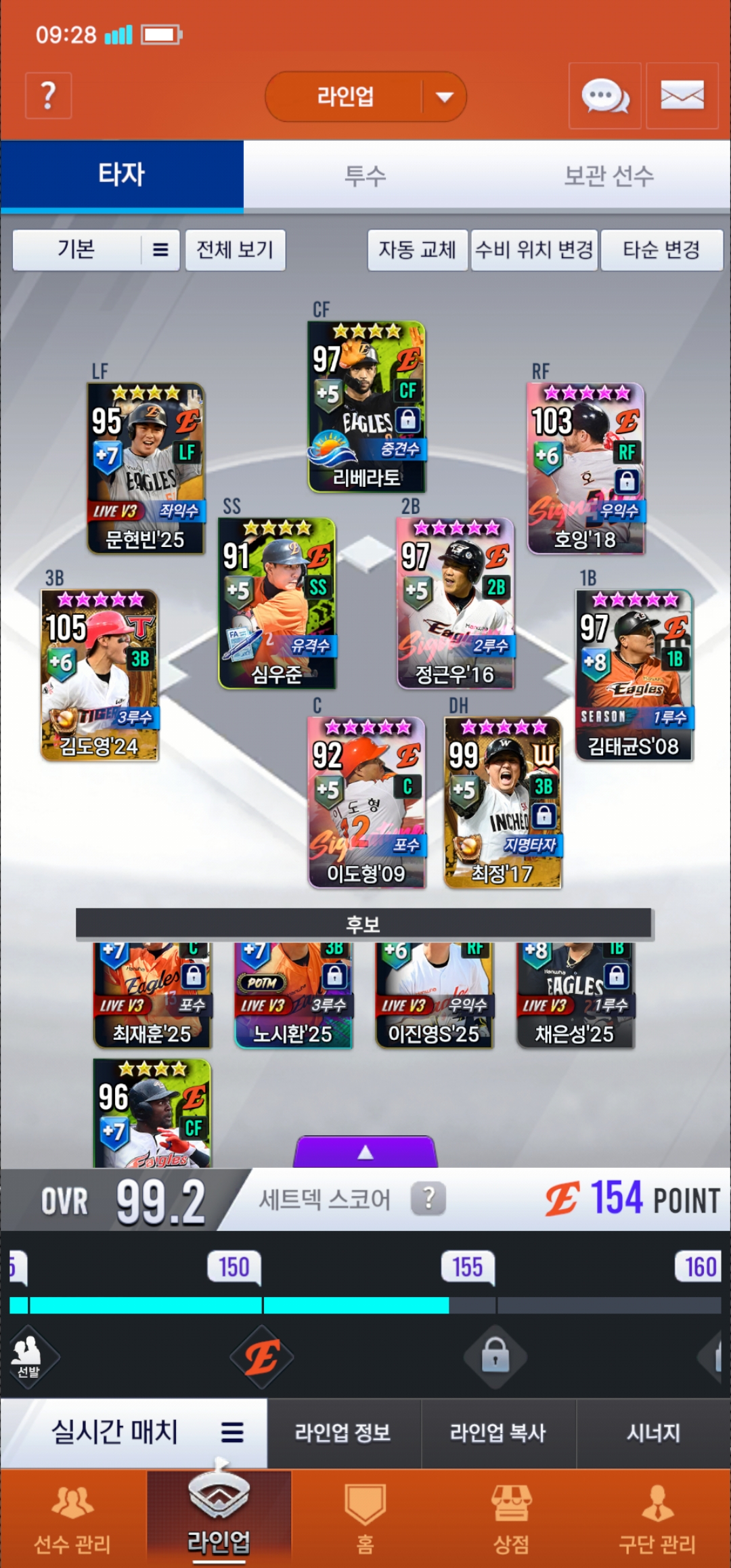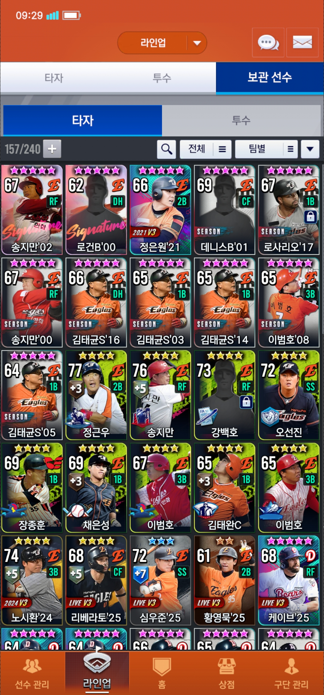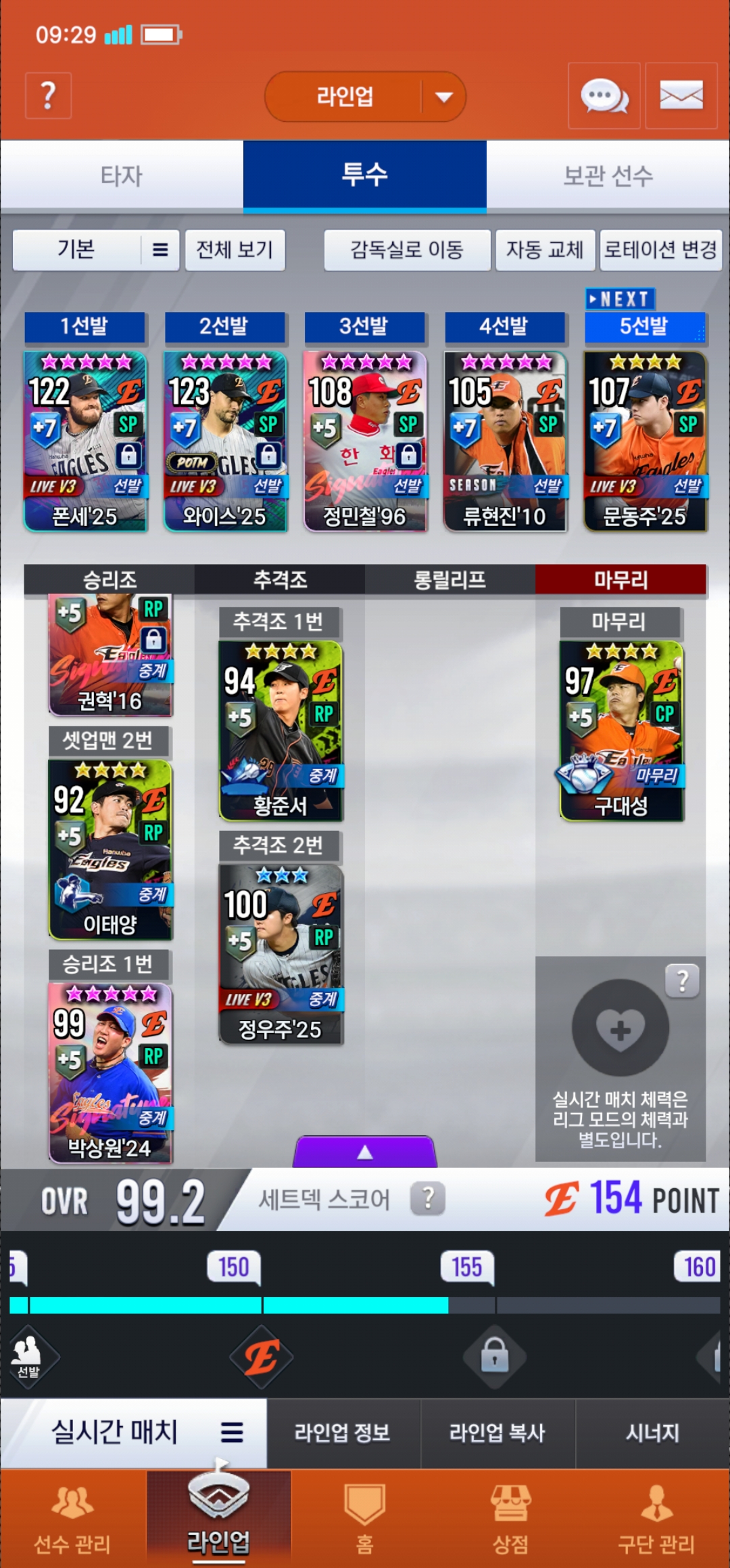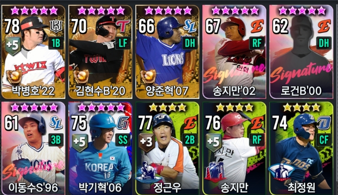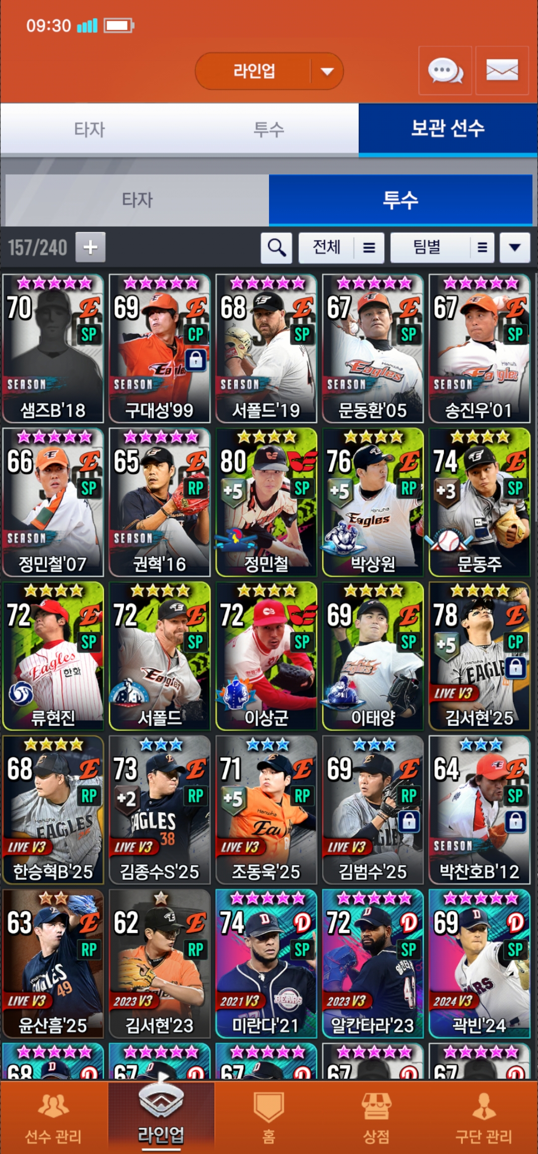 한화덱 포지션별 종결선수알려주세요