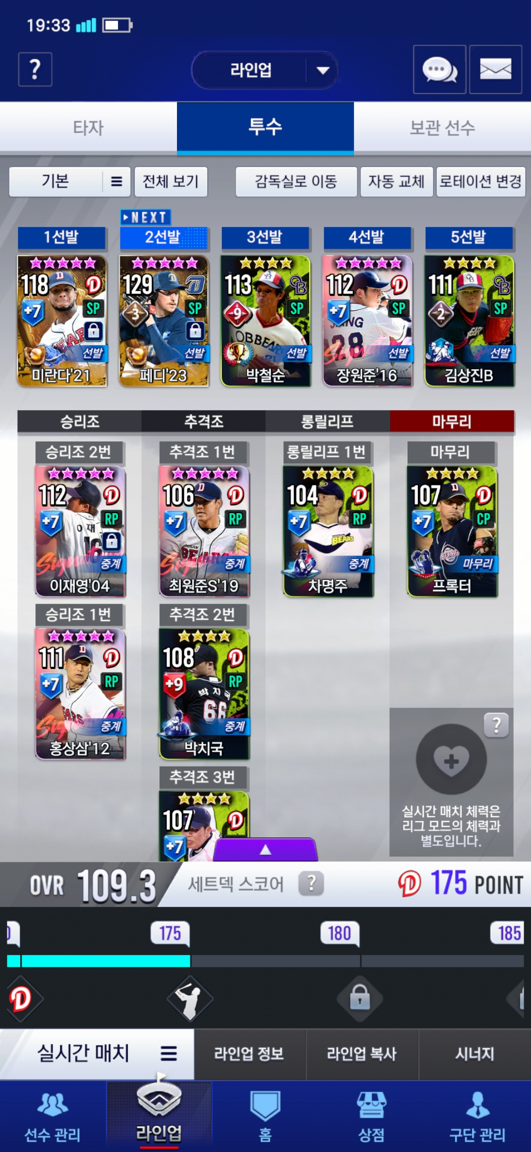 무과금인데 재영입으로 96 구대성이 떴어요.