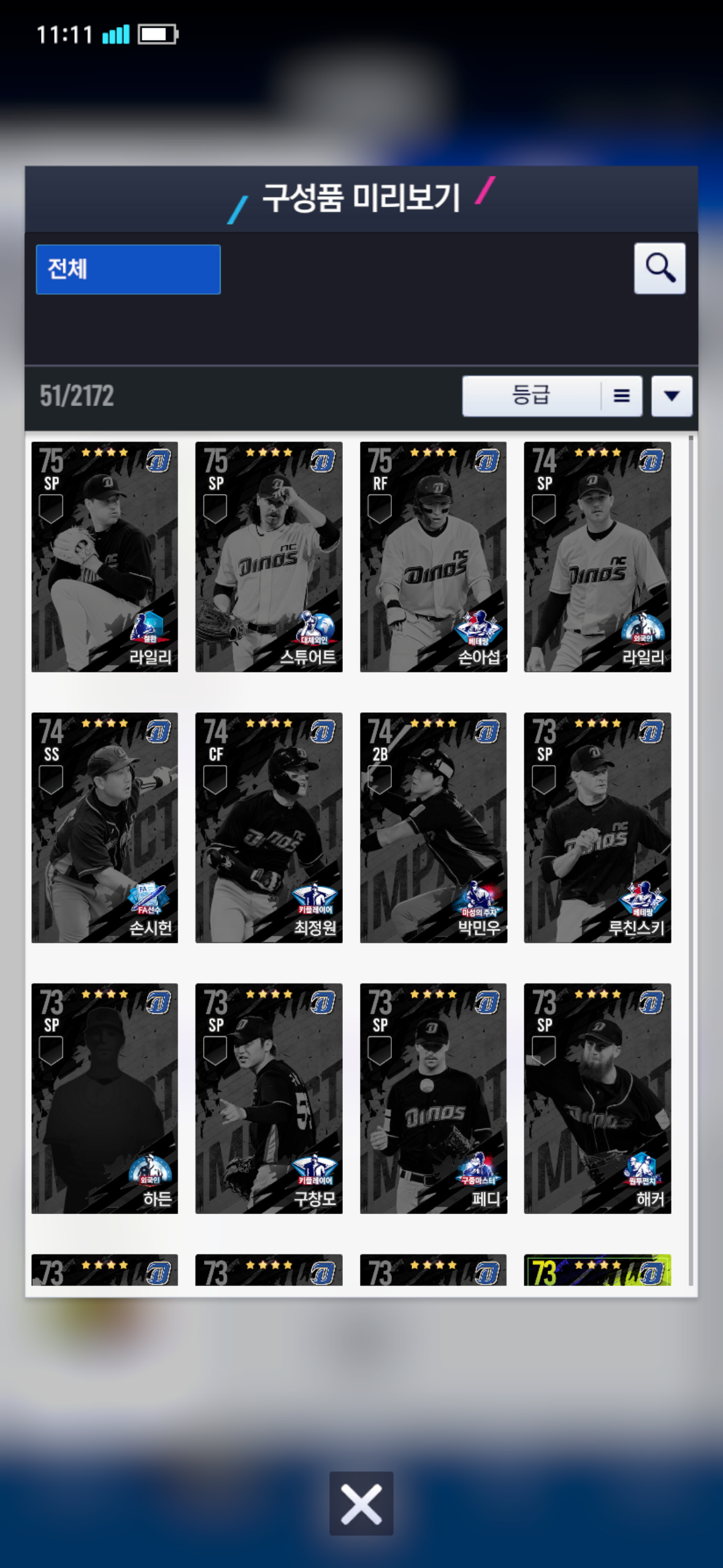 아 맨 아래는 임팩트 선택팩 카드입니다