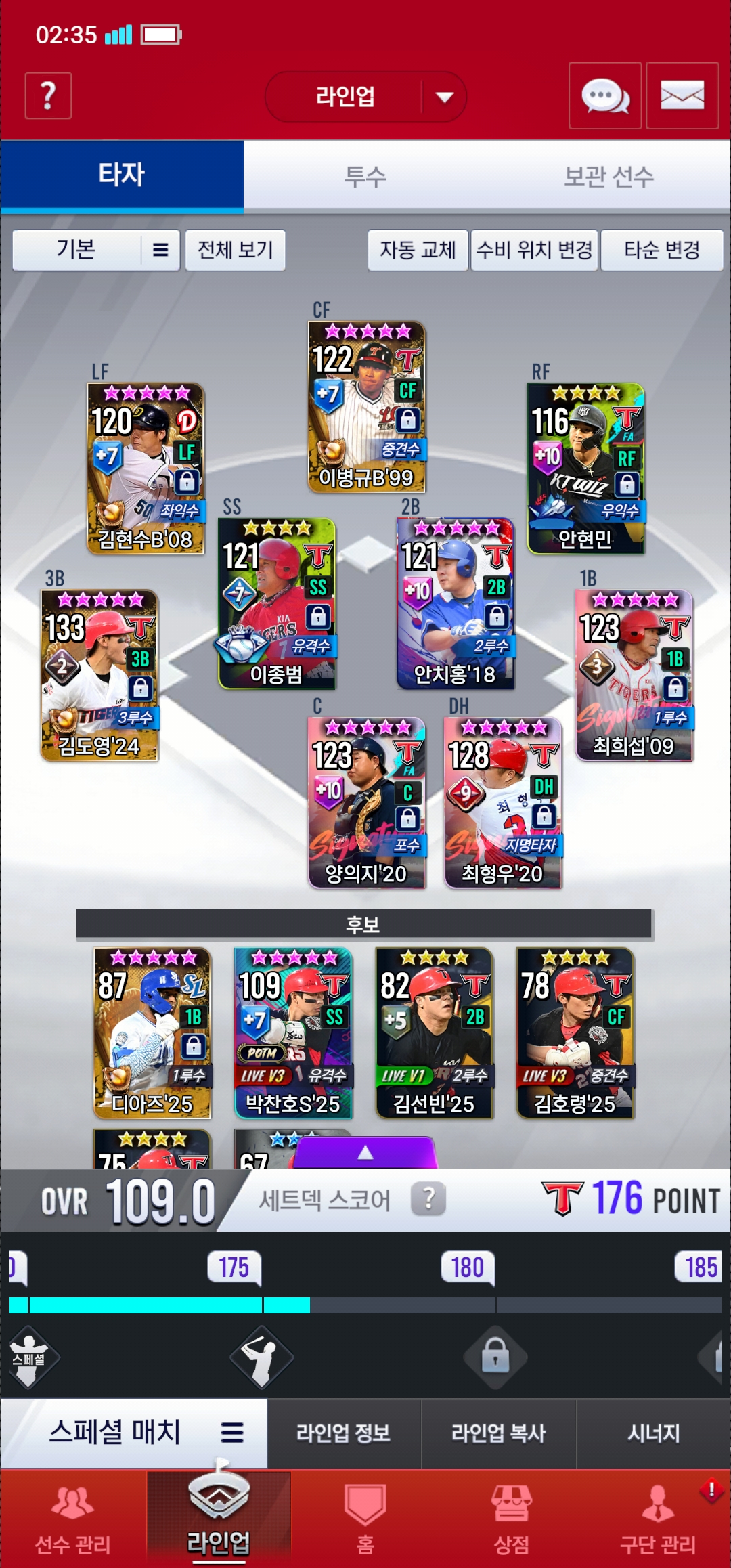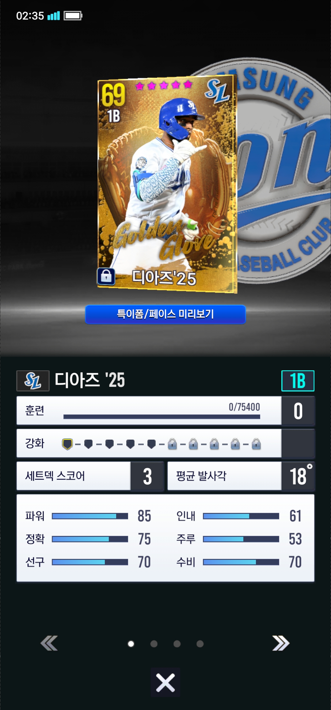 디아즈 나오더라고요. 1B은 99승엽, 14뱅, 18뱅