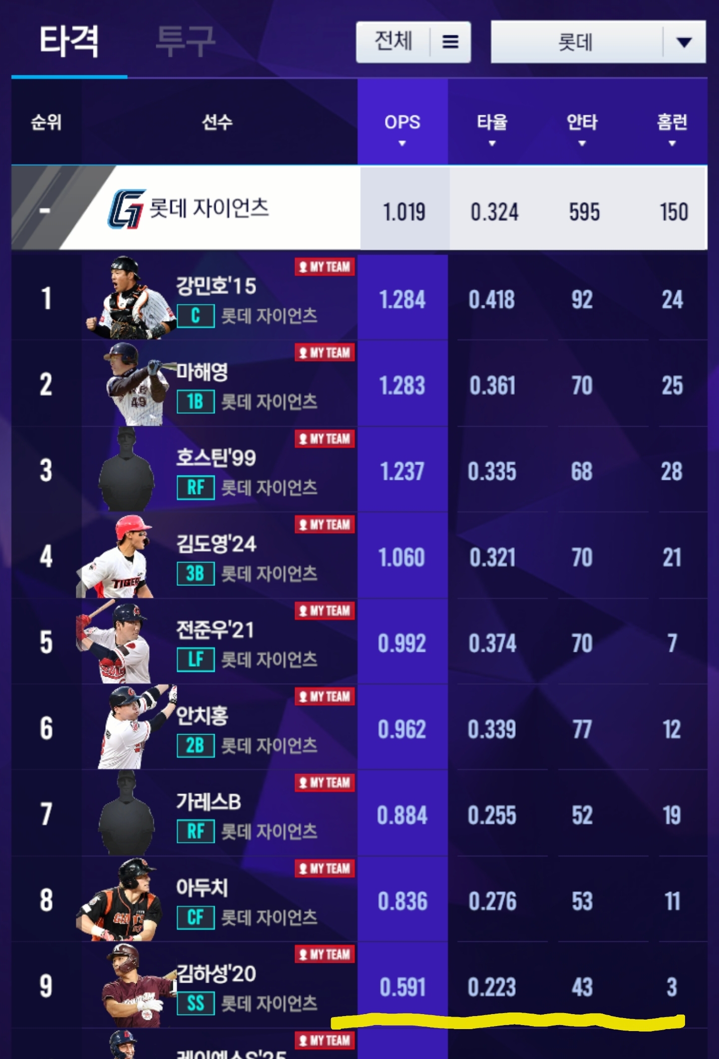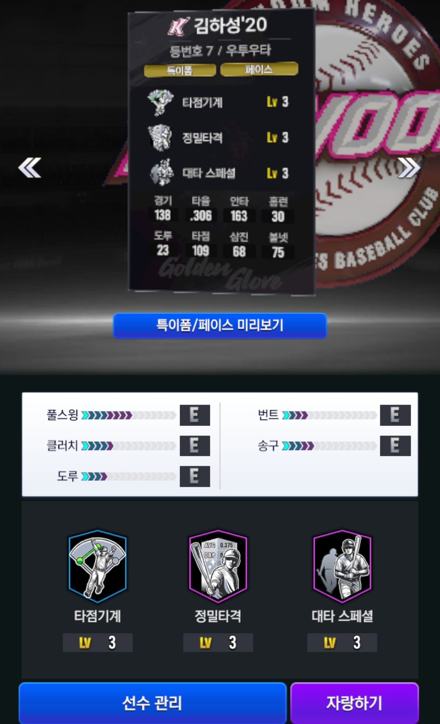시그 15 강민호도 같은 잠재력 E인데