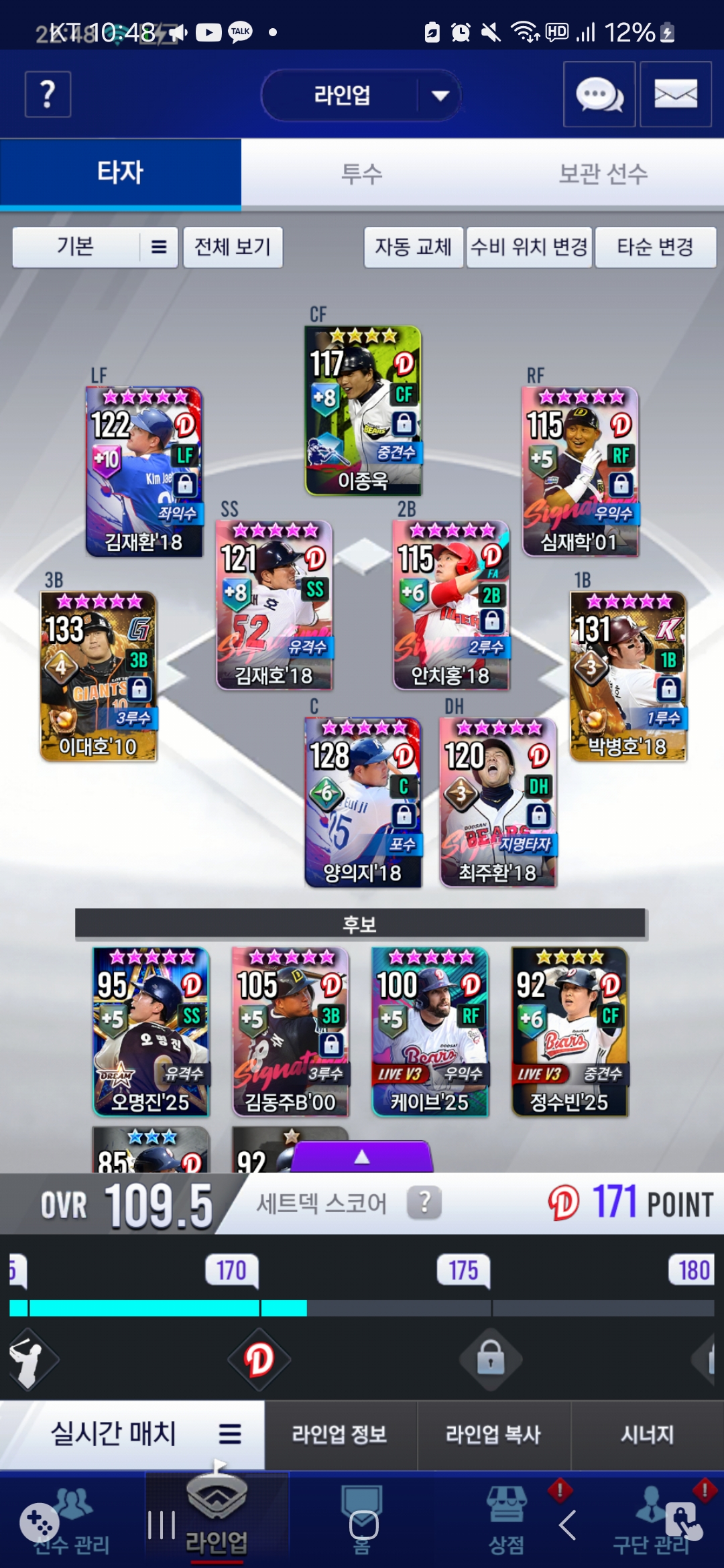 현재 3루에 골글 이대호, 지타에 18주환쓰고있는데 00동주가 떠서 어떻게 할지 고민이에요. 그냥 버리고 이대로 쓰는게 좋을지, 아니면 키워서 쓰는게 좋을지 말해주세요..ㅎㅎ