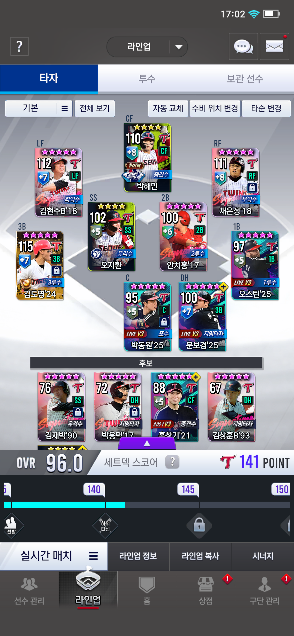 현재 덱 구성과 예비 선수는 아래와 같습니다.