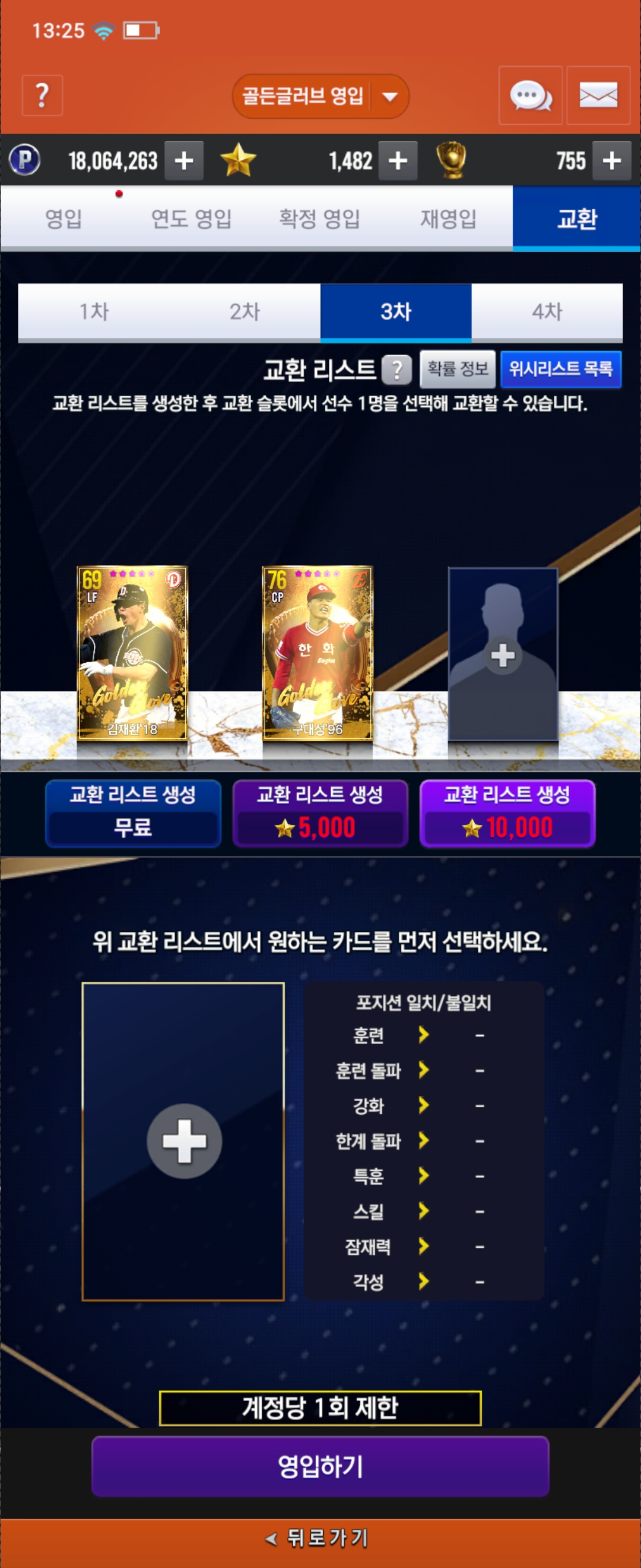 시작한지 5개월 정도된 부계를 키우는 유저입니다. (17한화) 골글 일반영입에서