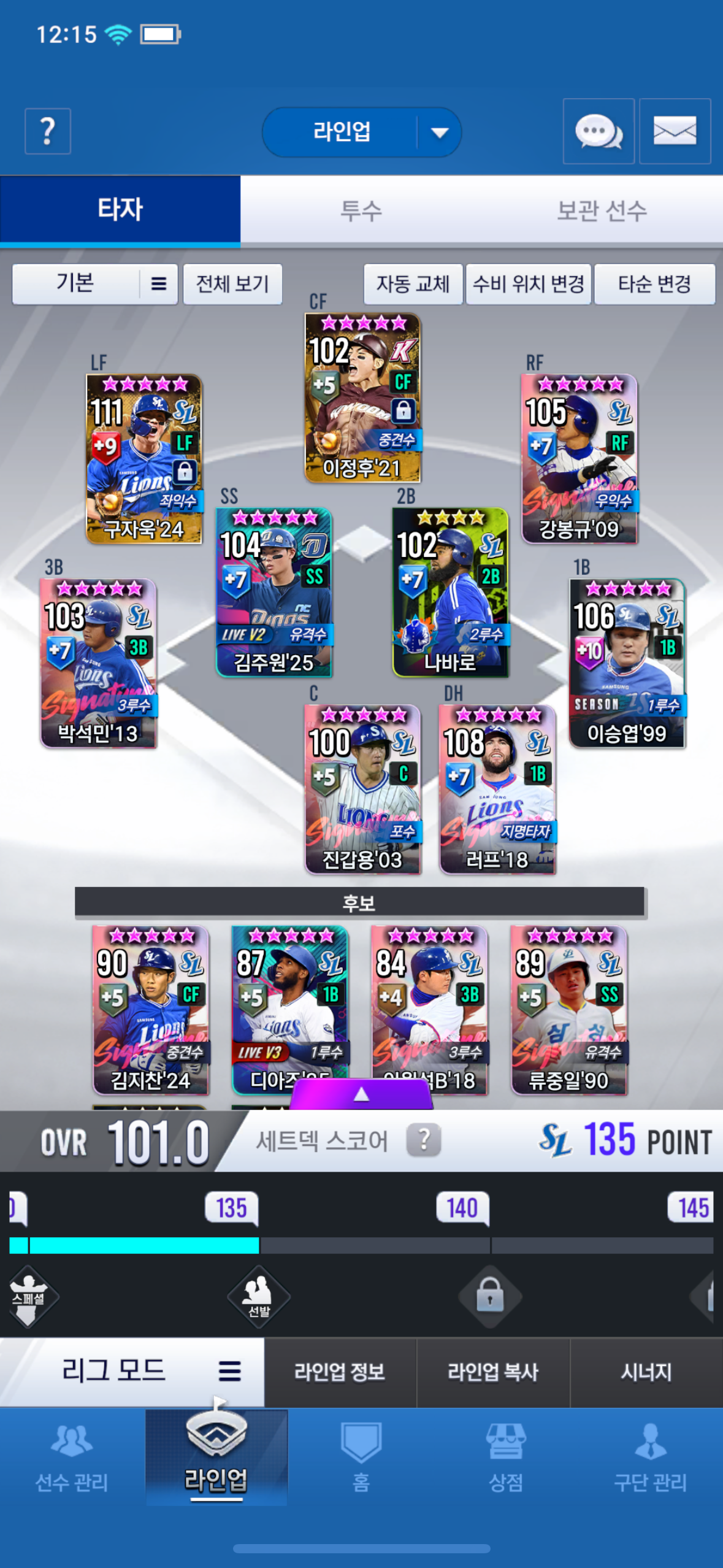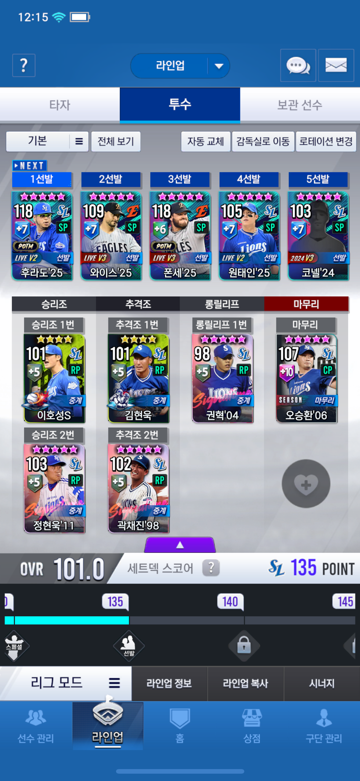 라인업 상태인데 바꿔야하는 포지션이랑 뭐 뽑아야 하는지 도움좀 주새요 ㅠ