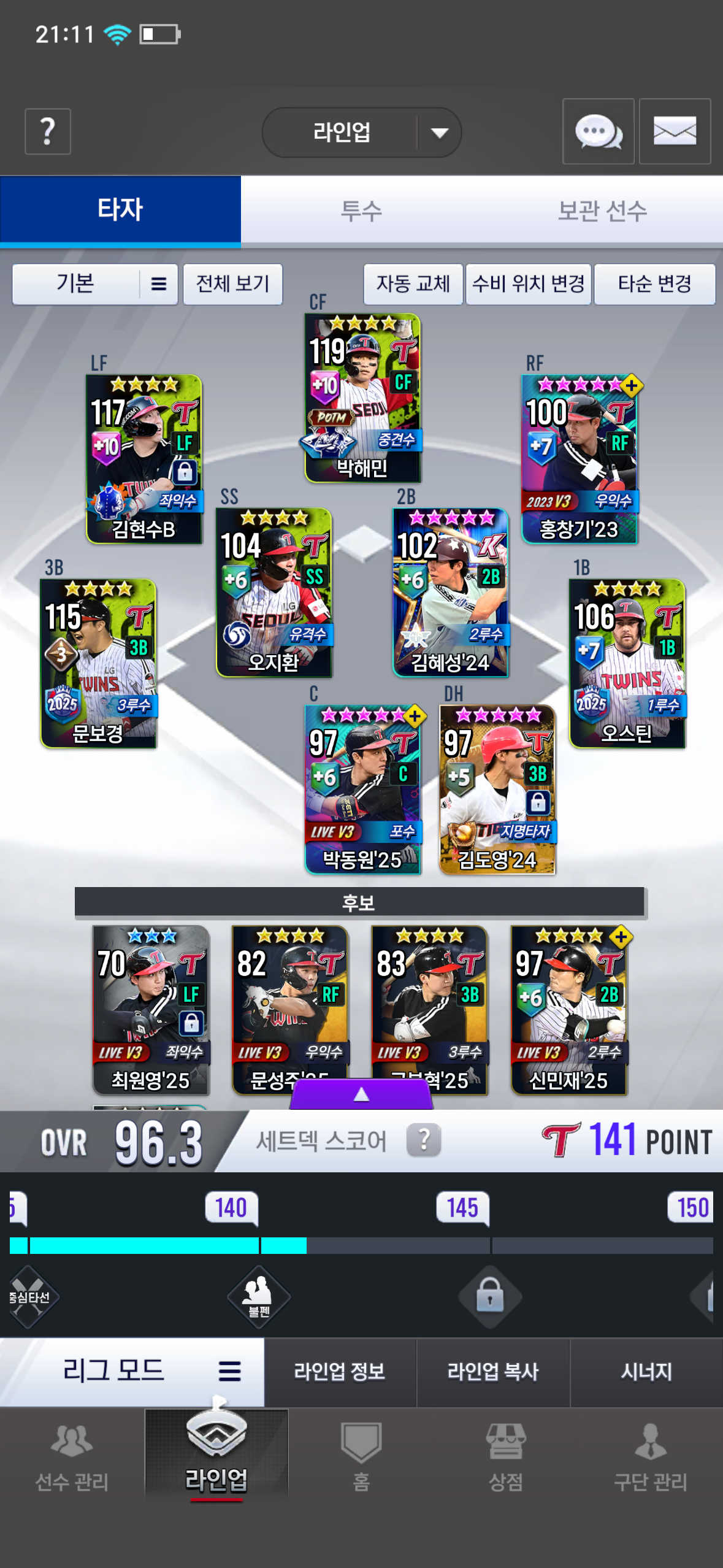 제가 LG 2025 현역덱을 부계로 키우고 있는데 메이저3에서 걸려서 리그가 넘어가지를 않네요 ㅠ 지금 뭘 해야할까요 ㅠㅠ