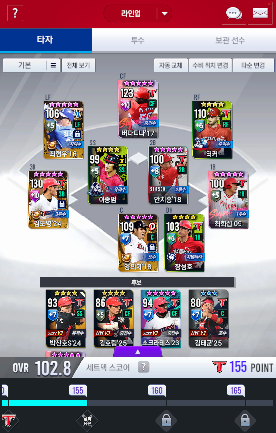 18덱을 노리긴 하였으나 갑자기 최형우가 뜬 관계로 뭔가 뭔가 팀이 이상해져 보이네요