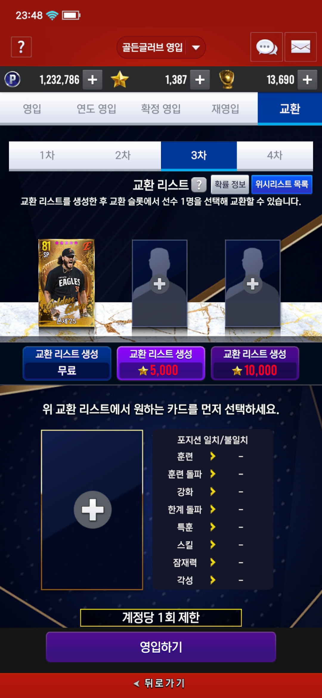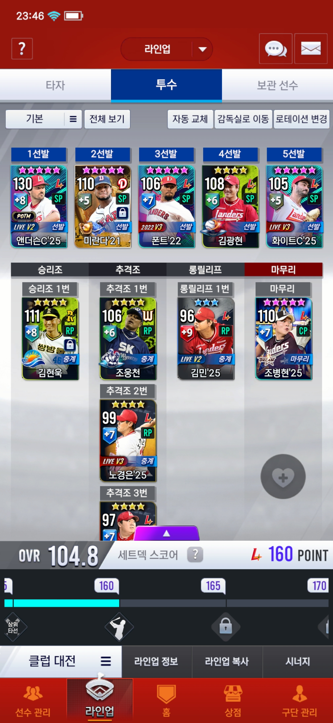 미란다를 교환용으로 넣어서 폰세를 교환해서 1골투쓸지