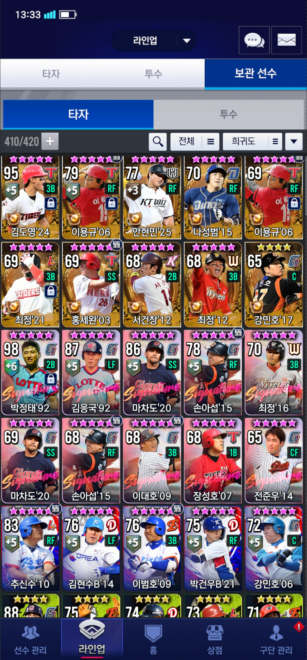 - 1. 최형우 뽑고 시그 준우 키울때까지 쓰다가 이후 지타 전환
