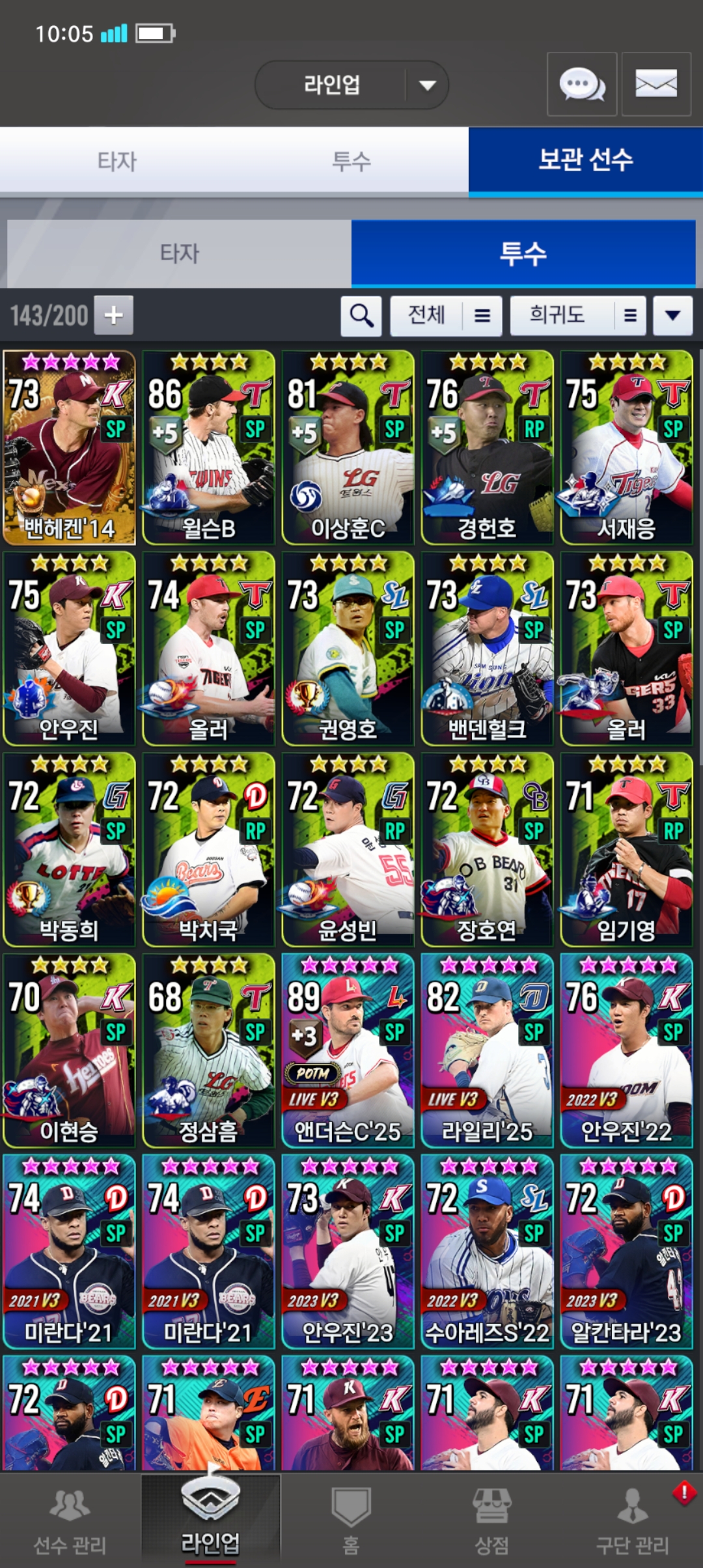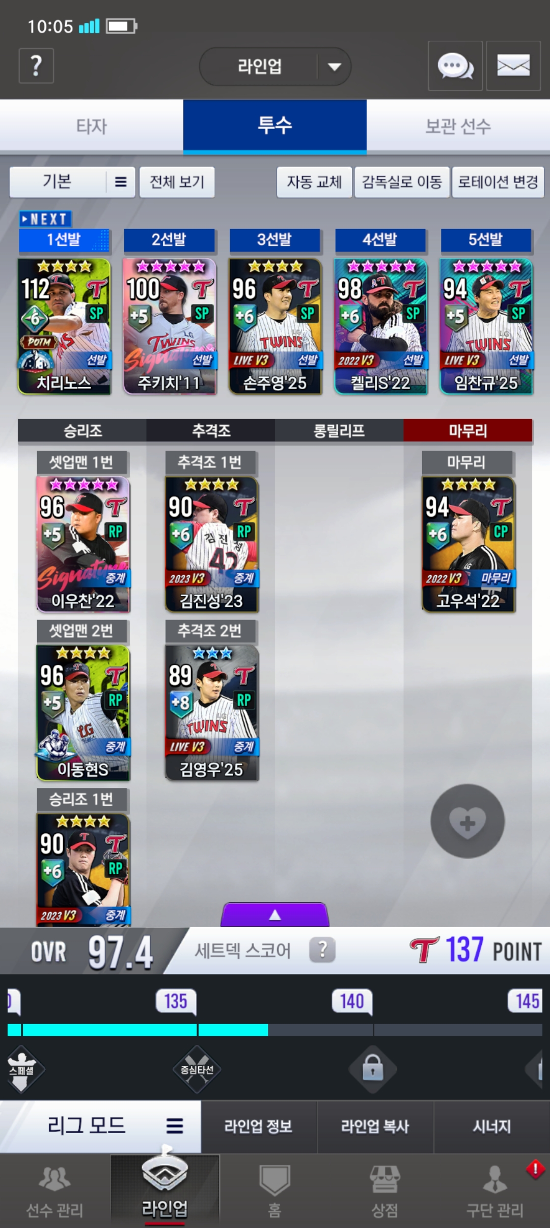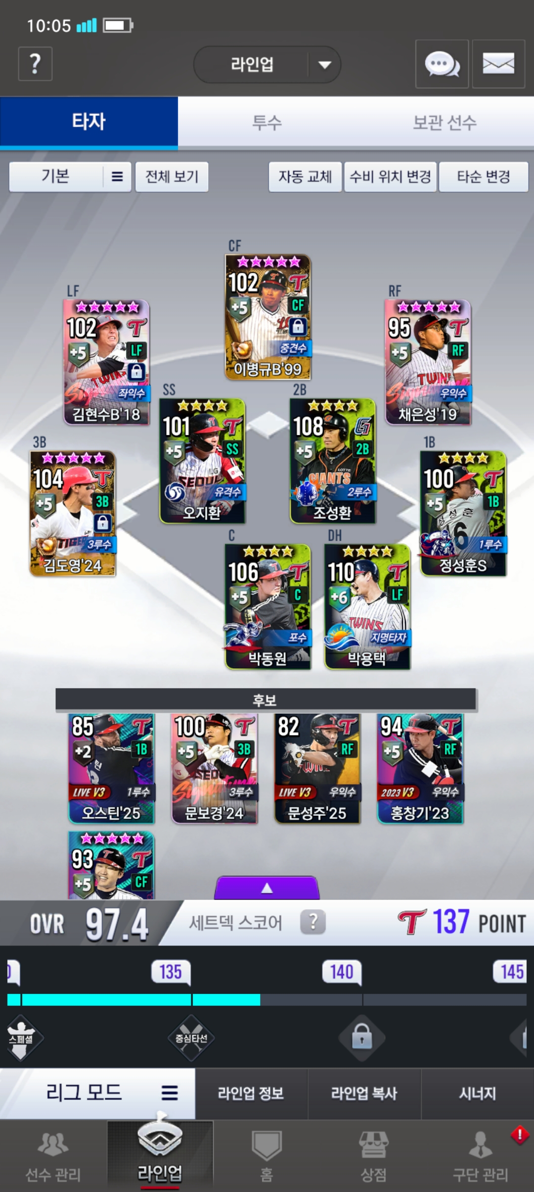 현재 덱이랑 보관선수입니다.