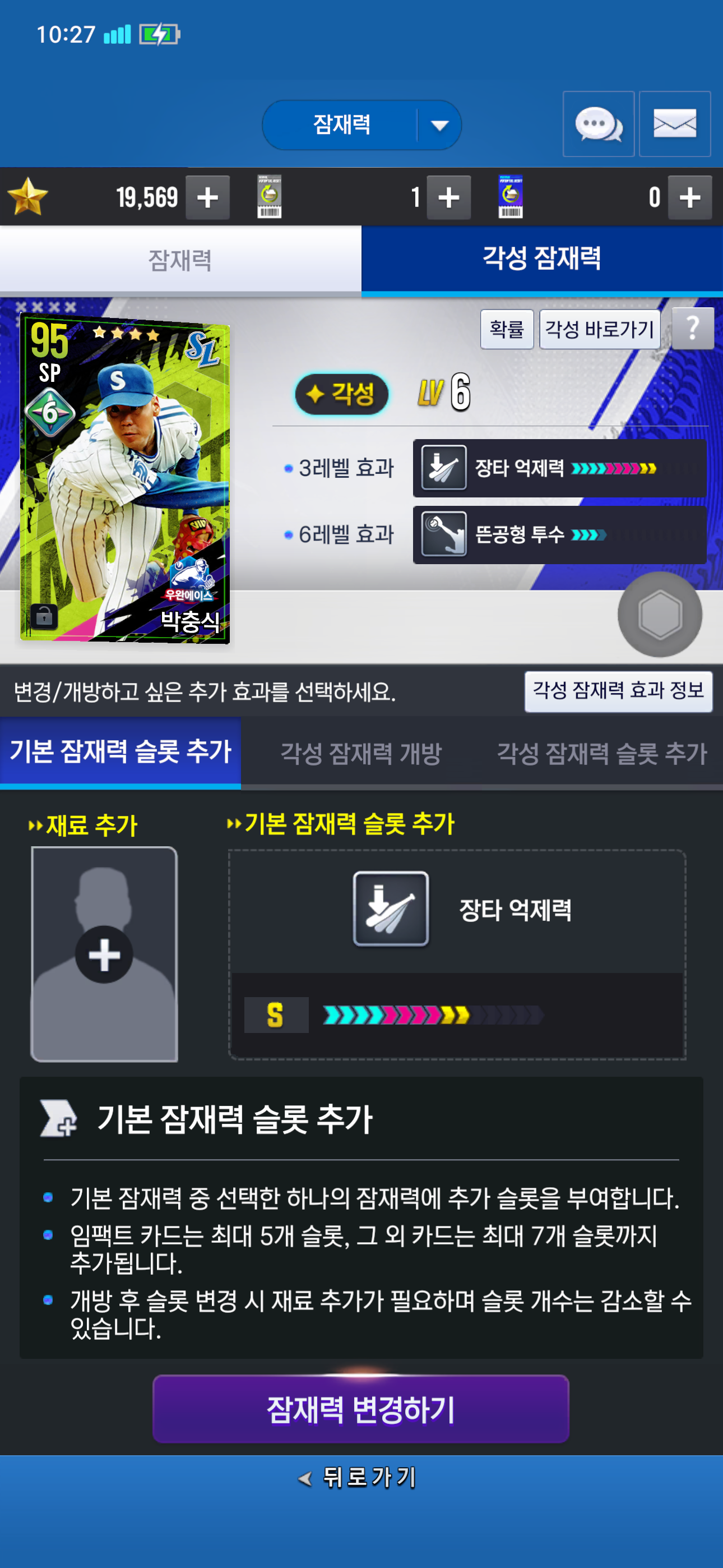 기본잠재력 추가 슬롯 열라고 SP 집어넣고 돌렸는데